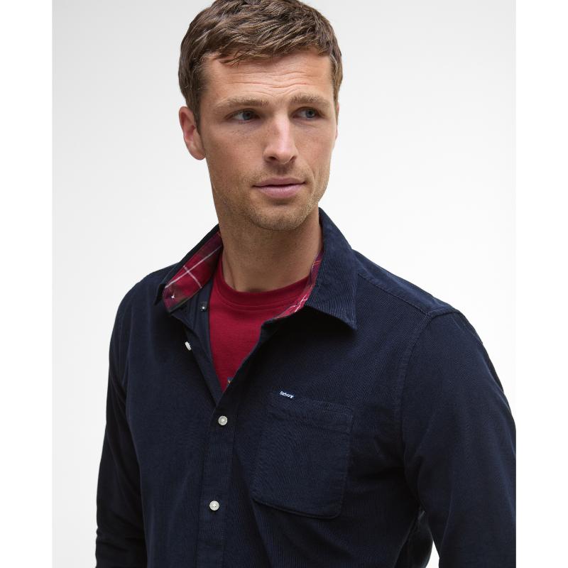 Barbour Ramsey Corduroy Mens Tailored Shirt - Navy/Red