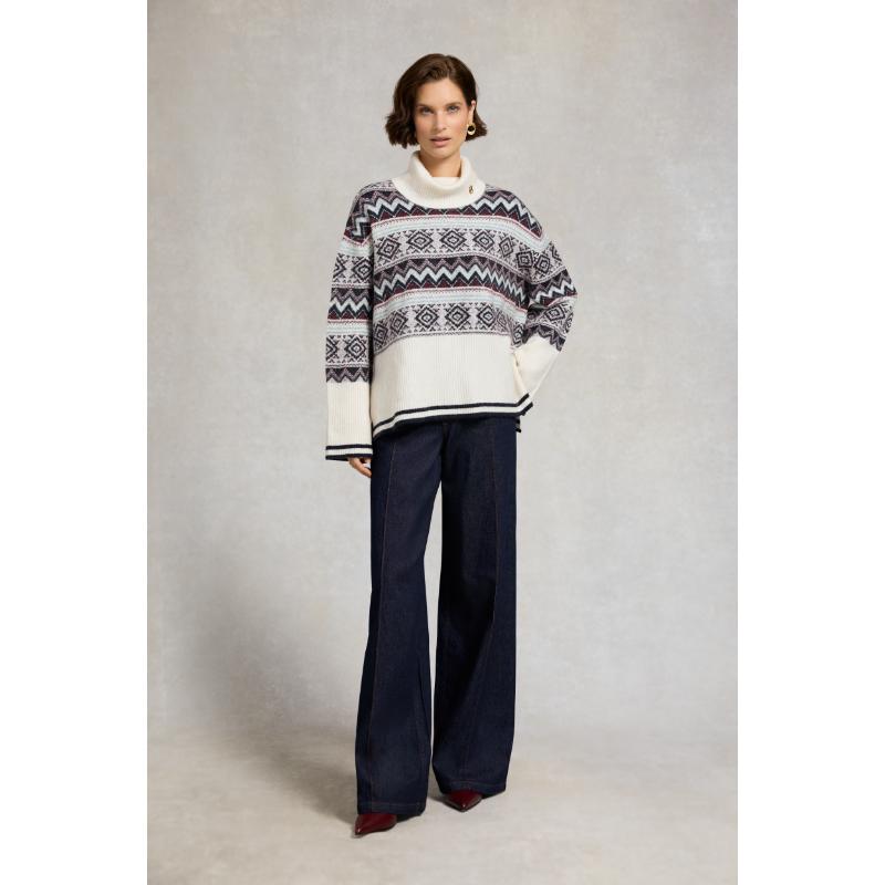 Holland Cooper Antonia Fairisle Ladies Roll Neck Knit Jumper - Blue