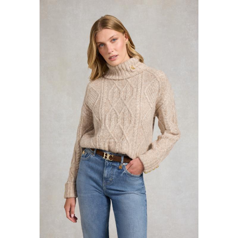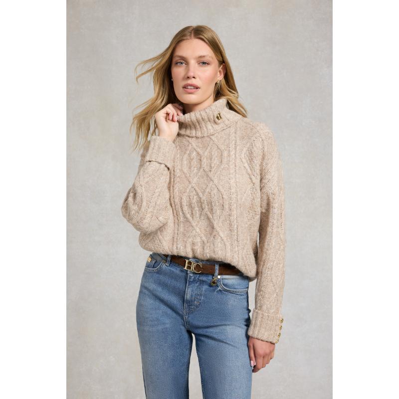 Holland Cooper Noveli Ladies Roll Neck Knit Jumper - Taupe
