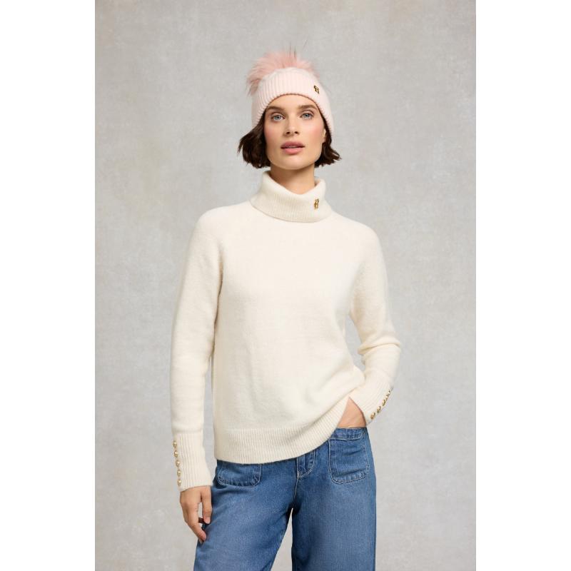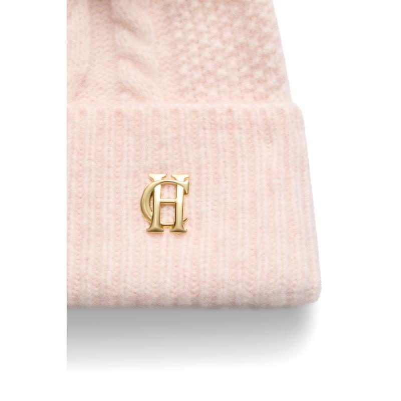 Holland Cooper Sloane Cable Ladies Bobble Hat - Soft Pink