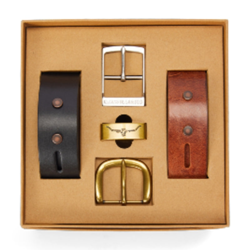 Elevate your style game with the R.M.Williams 1 1/2 Mens Belt Limited Edition Gift Set. Made in Australia from double butt solid hide leather, this limited edition set includes 2 interchangeable leather straps, buckles, and keepers for a versatile range of looks. Presented in a gift box, it's the perfect present for any fashion-forward man.