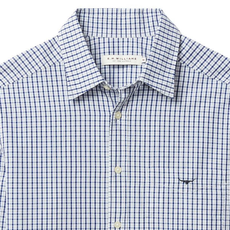 R.M.Williams Augusta Classic Fit Poplin Mens Shirt - White Blue