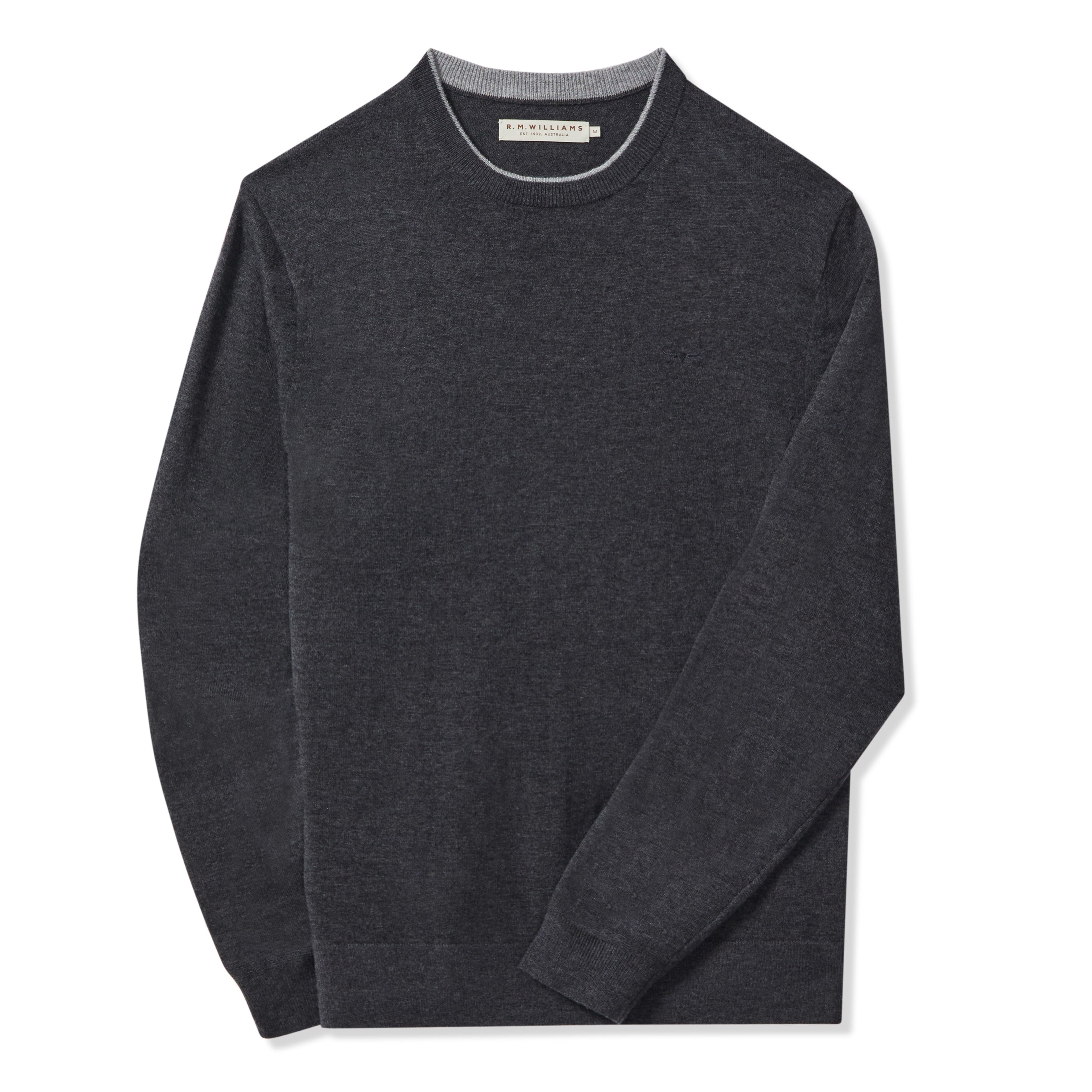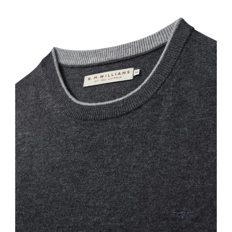 R.M.Williams Howe Mens Australian Extra Fine Merino Crew Neck Sweater - Charcoal