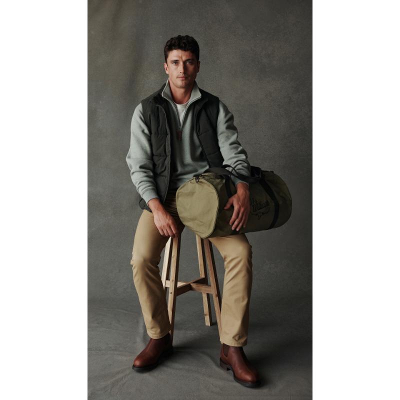 The R.M.Williams RM Ditty Bag is the perfect rugged travel companion. Made with water-resistant Halley Stevensons waxed cotton canvas and featuring canvas handles and logo details, you can hit the road with confidence. The unlined interior, brass hardware, and adjustable and detachable straps make this bag both functional and stylish. This bag provides a seamless combination of style, practicality, and longevity, making it the perfect companion for your travels.
