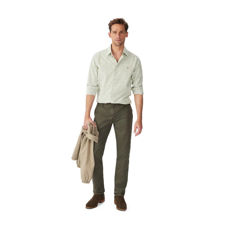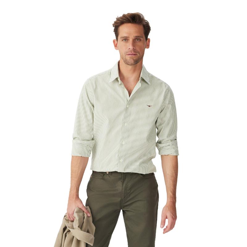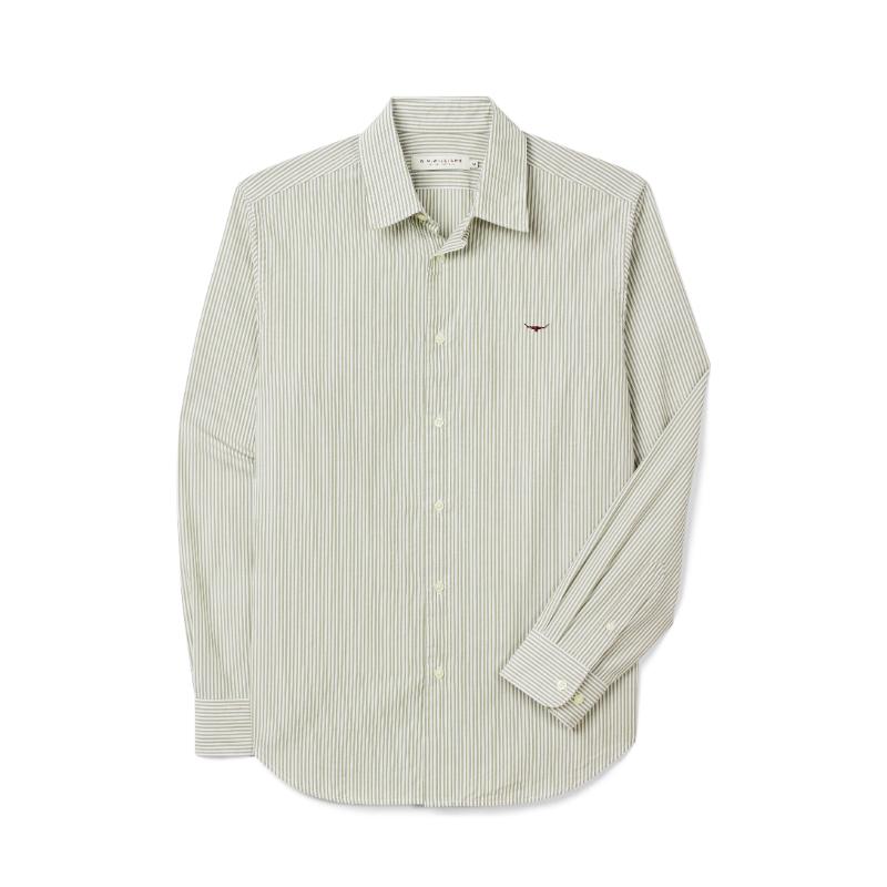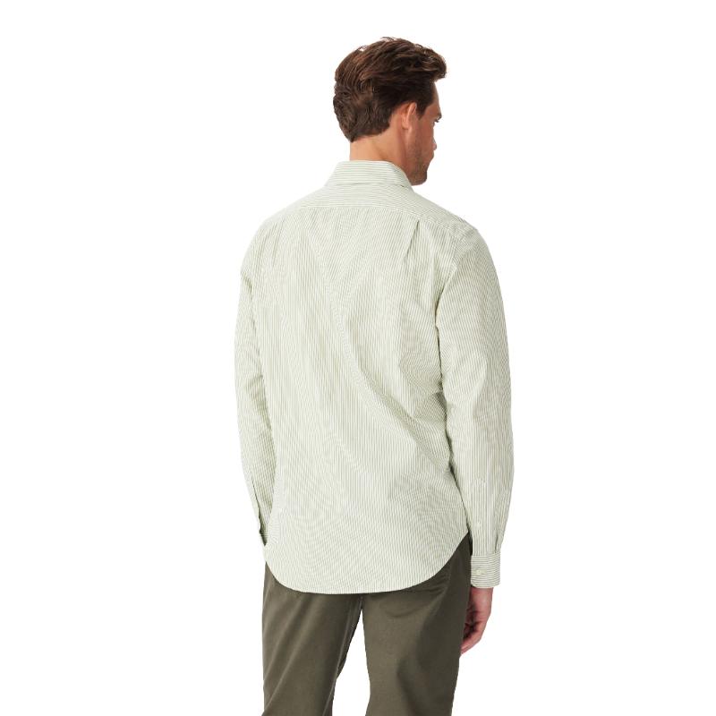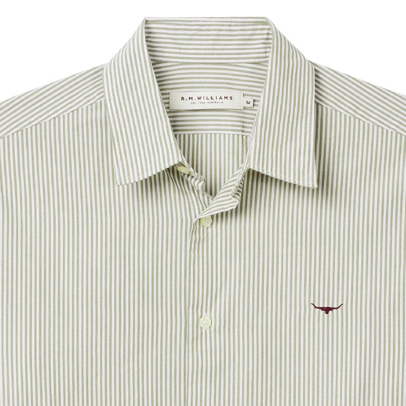R.M.Williams Sommers Regular Fit Poplin Mens Shirt - White and Green Stripe
