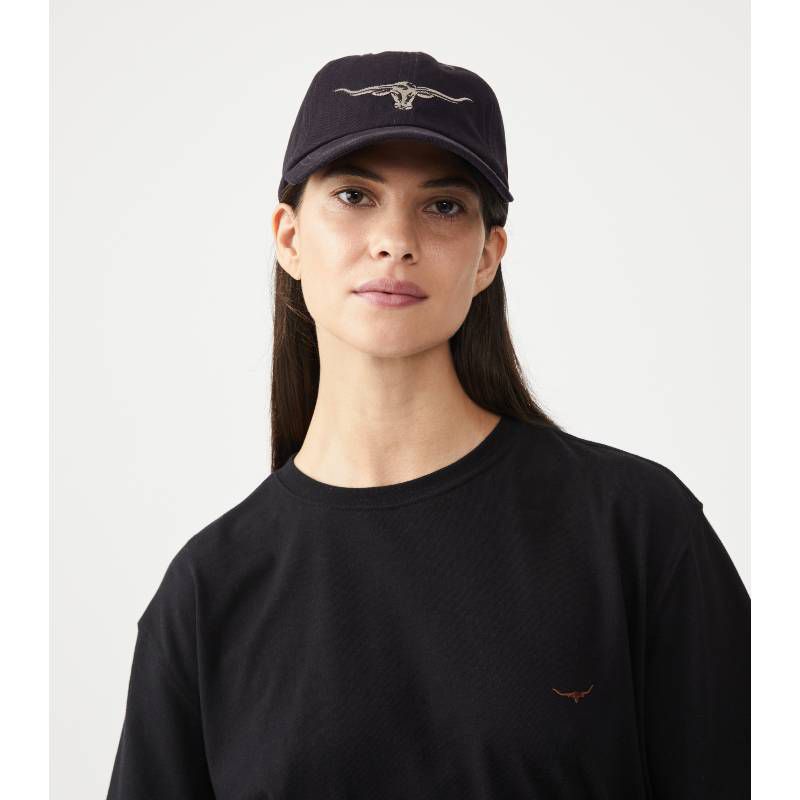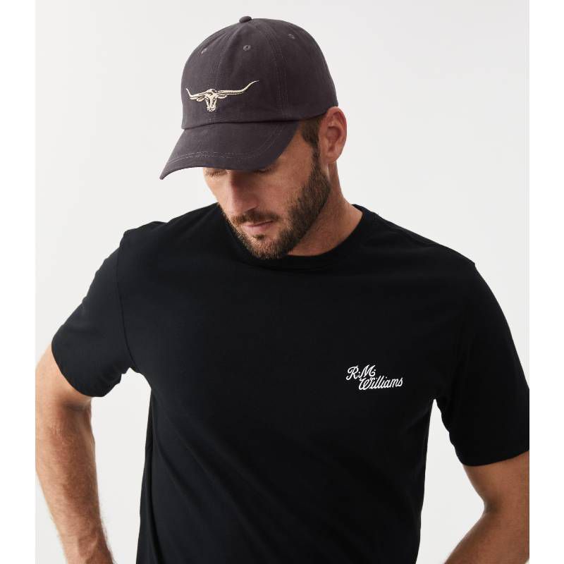 The RM Williams Steers Head Logo Cap is a classic and effortlessly stylish accessory, crafted from 100% pure cotton twill. Featuring the iconic RM steers head logo embroidered on the front, curved peak, adjustable strap at the rear and bronze metal clasp enabling the perfect fit. Easy to wear and ideal for your outdoor adventures.