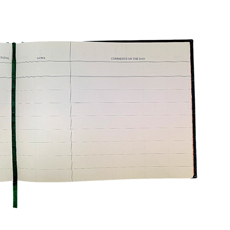 Beautifully designed and presented with high quality cream paper and 64 gilt edged leaves (128 sides). A superior quality Game Book hand bound with a lizard print detail. With plenty of space to record the shoot, fellow guns, it is ideal for shooting enthusiasts to archive those sporting memories.