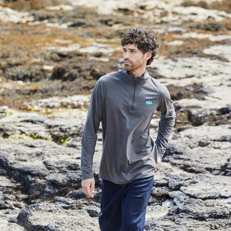 Ridgeline Baseline 1/4 Zip Pull On Mens Top - Light Bark Marl