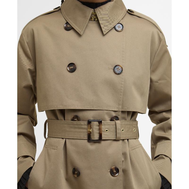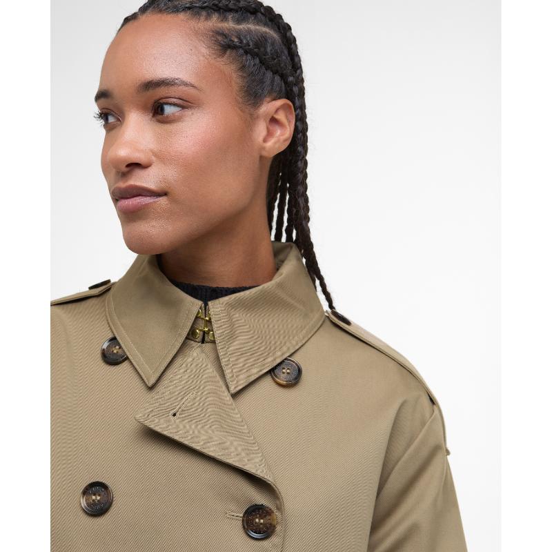 Barbour Aoife Ladies Showerproof Trench Coat - Military Brown/Hessian Tartan