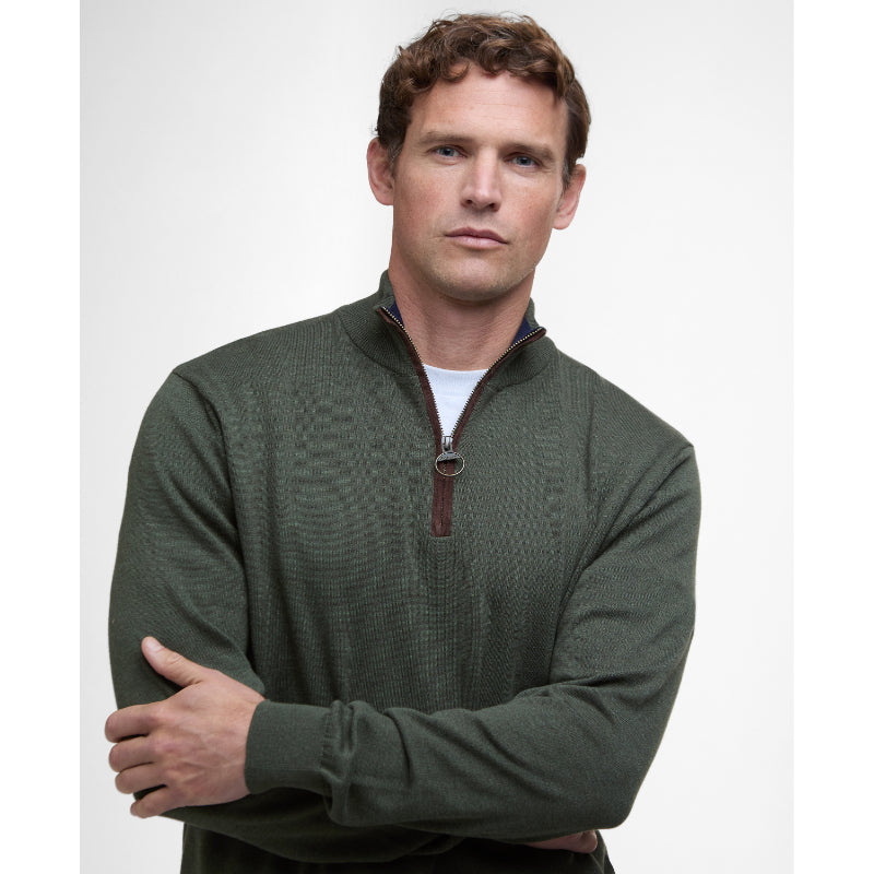 Barbour Bayfield Mens Knitted Half Zip Jumper - Mid Olive