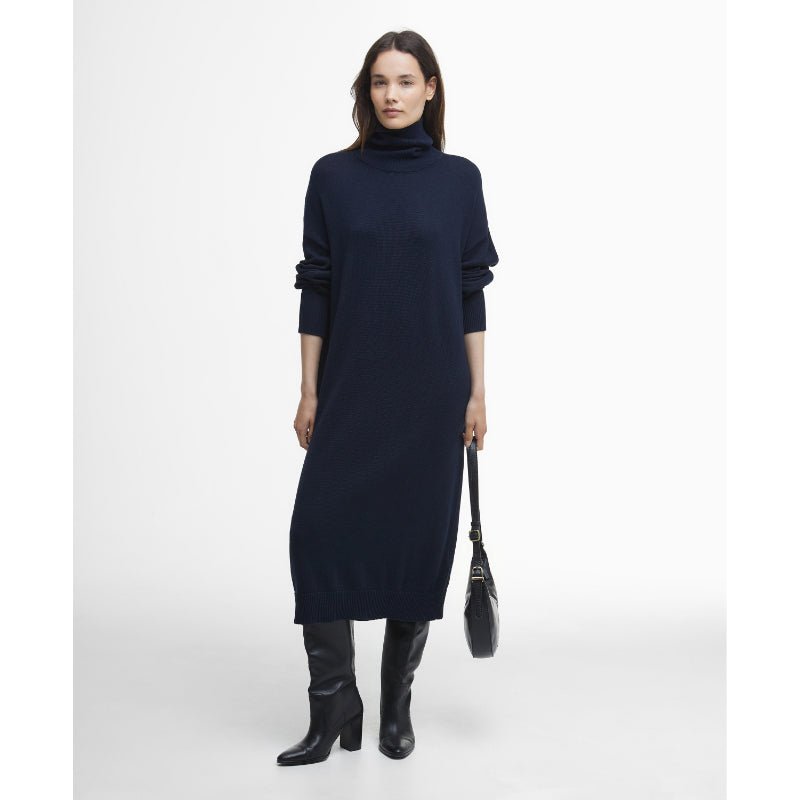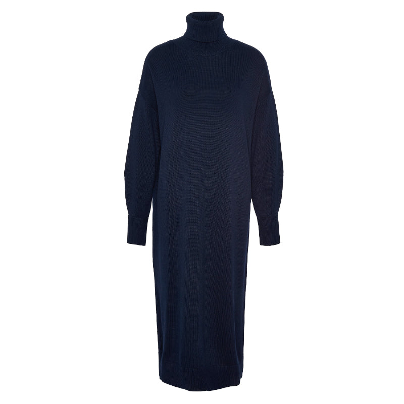 Barbour Cassandra Knitted Cotton Cashmere Ladies Roll Neck Dress - Navy