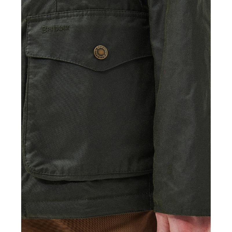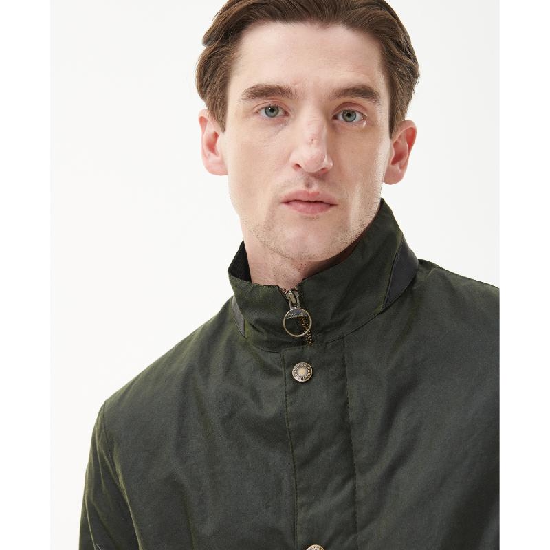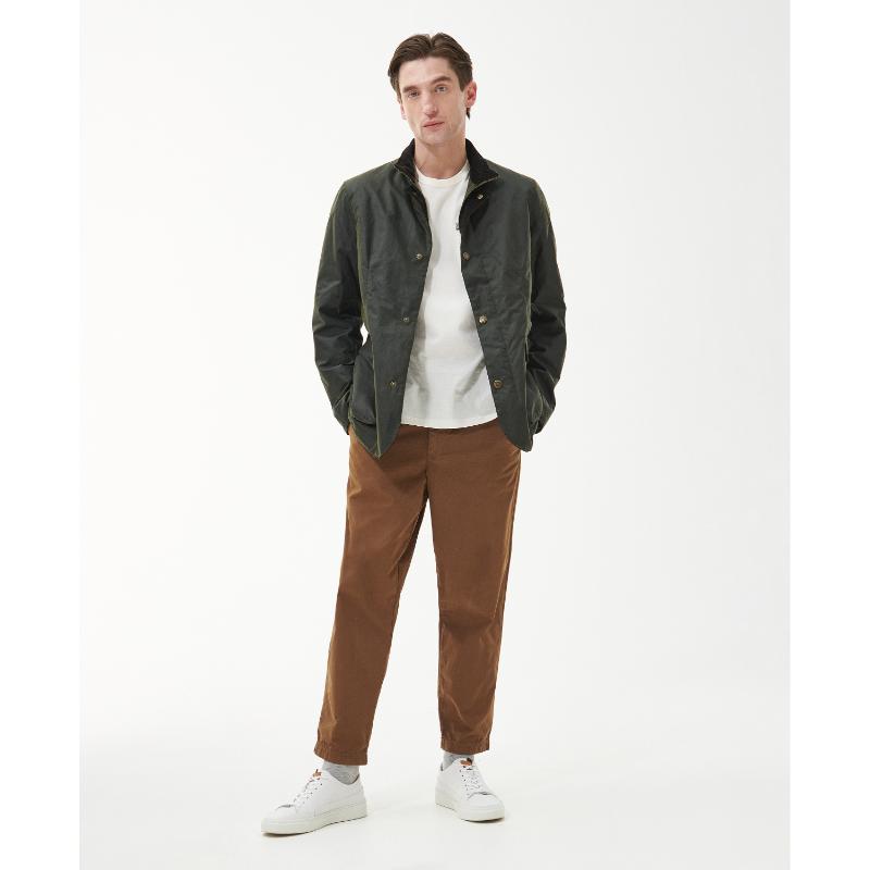 Expertly crafted with 6 oz waxed cotton, the Barbour Compton Mens Jacket provides exceptional safeguarding against harsh weather conditions. Boasting a stand collar, zip, stud front fastenings, and lower bellow pockets, this jacket also boasts an angled chest pocket, leather detailing, and a box quilted lining. Complete with the iconic Barbour embroidery on the front left pocket flap, this garment seamlessly combines practicality and sophistication.