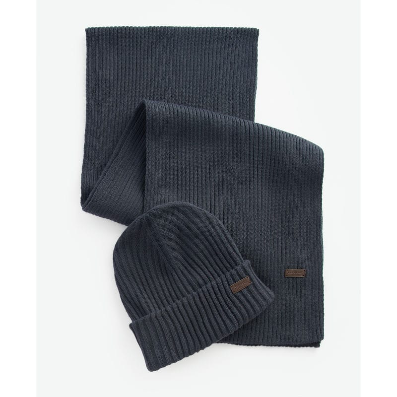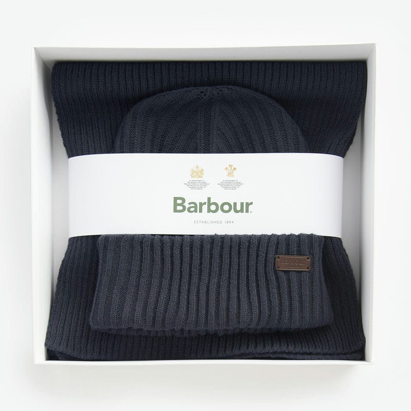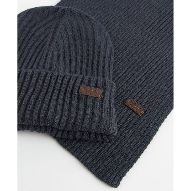 Barbour Crimdon Mens Beanie & Scarf Gift Set - Navy