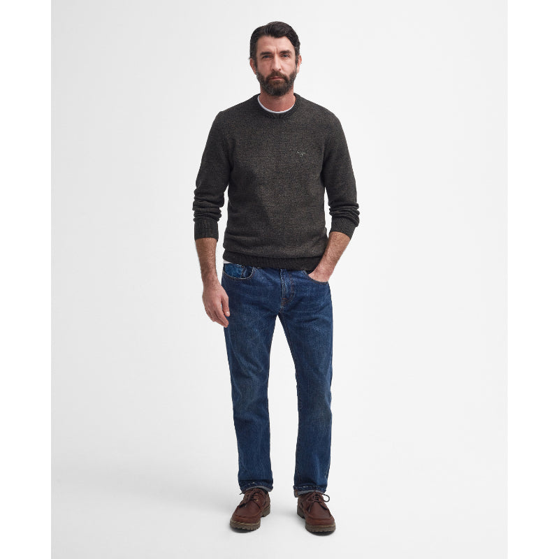 Barbour Firle Cotton Cashmere Mens Crew Neck Jumper - Olive Marl