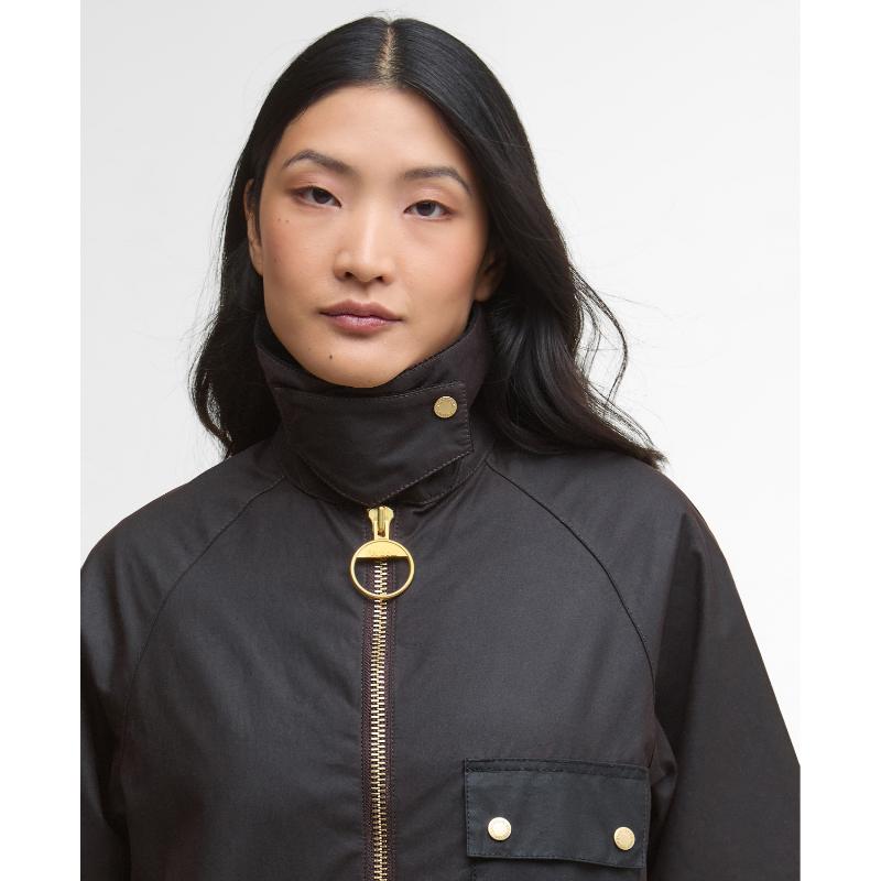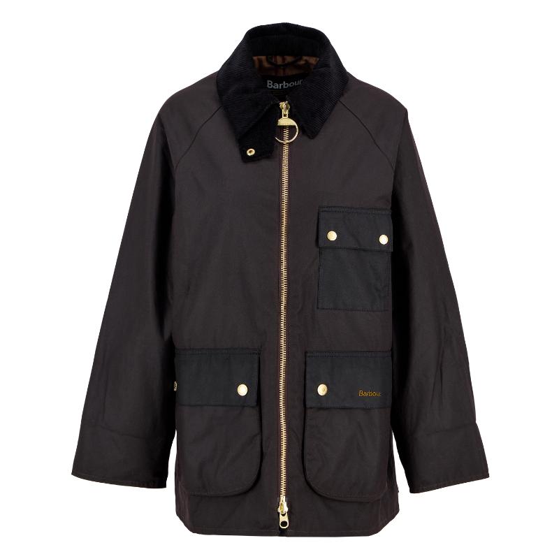 The Barbour Luella Ladies Wax Jacket blends classic heritage with modern details for a refined outdoor look. Crafted with a durable waxed finish, it offers reliable protection against the elements. Its three-pocket design includes a contrasting chest pocket, pocket flaps, and zip guard, enhancing both style and functionality. The cord collar adds comfort and texture, while the exposed chunky metal zip with a large ring pull ensures a secure closure. Lined with Barbour’s signature tartan, including under the cuffs, this jacket combines tradition with contemporary appeal, perfect for unpredictable weather.
