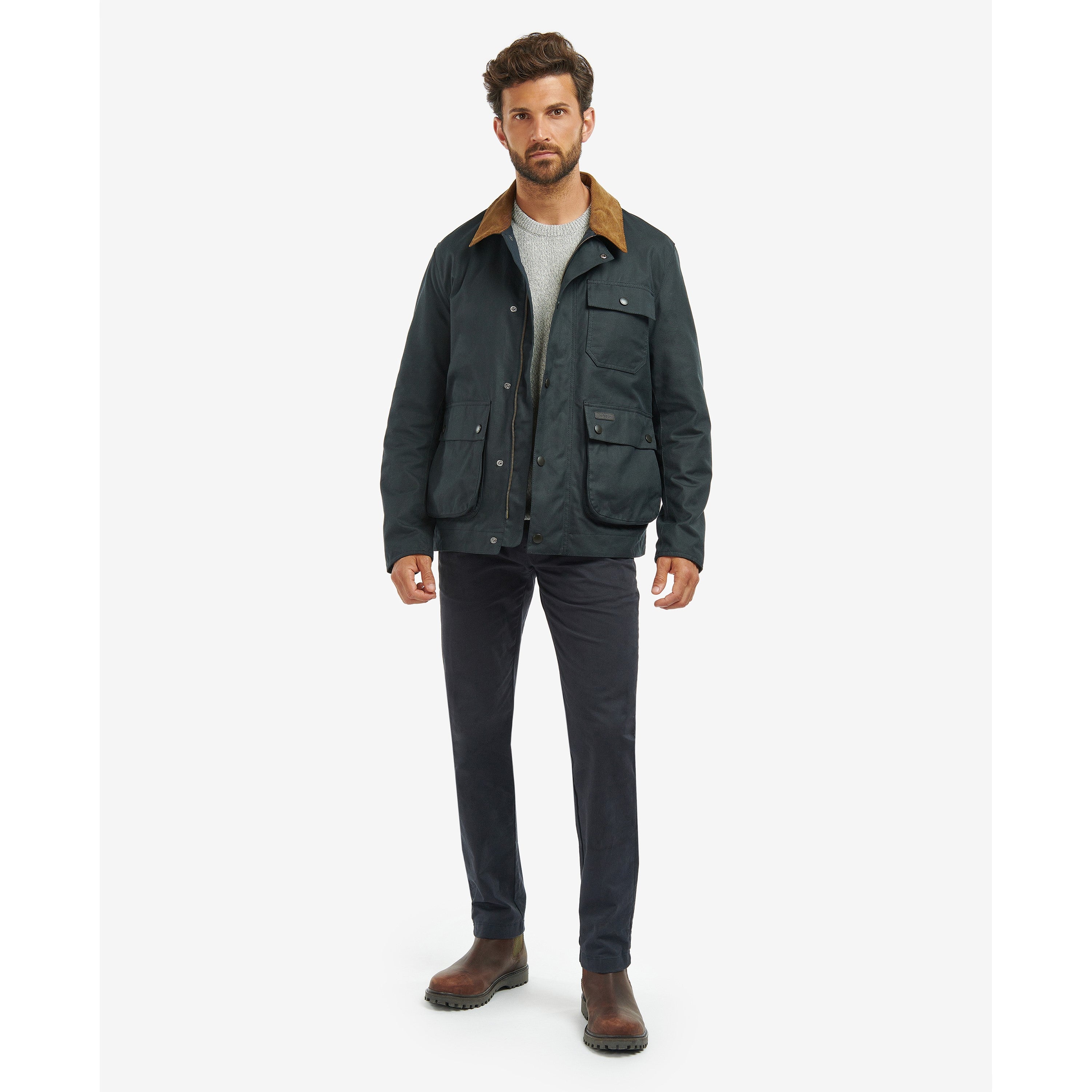 The Barbour Meldon Mens Wax Jacket is an understated yet handsome country coat, crafted from 8oz Oban waxed cotton, sustainably sourced via the 'Better Cotton' initiative. Oban wax creates a smart matte finish, whilst also providing water-repellent qualities. Features of the Meldon include a needlecord collar, two lower bellows pockets and a chest pocket, a full-length zip behind the stud front fastening, and subtle Barbour branding.