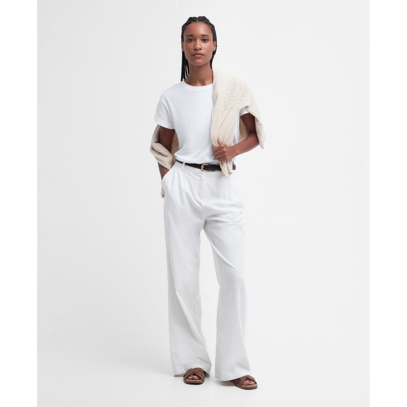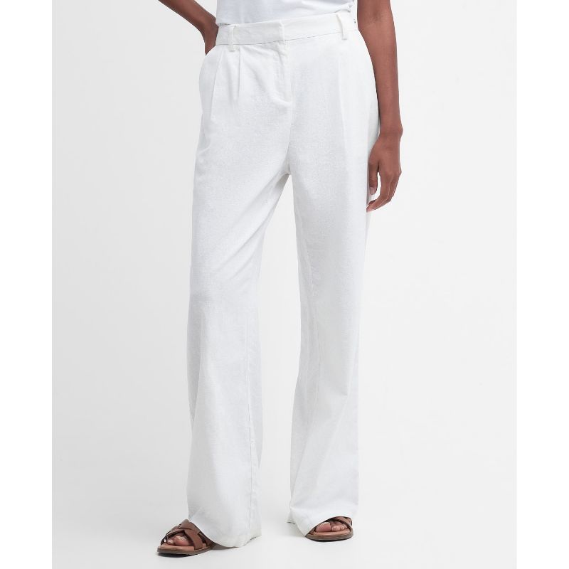The Barbour Somerland Ladies Trousers are designed with a relaxed fit, made of a cotton and linen blend, and feature double pleats with welt pockets to the back. A fly opening with a button fastening provides reliable closure that won't come undone. Perfect for any occasion, the timeless style and comfortable fit make it an easy addition to any outfit.