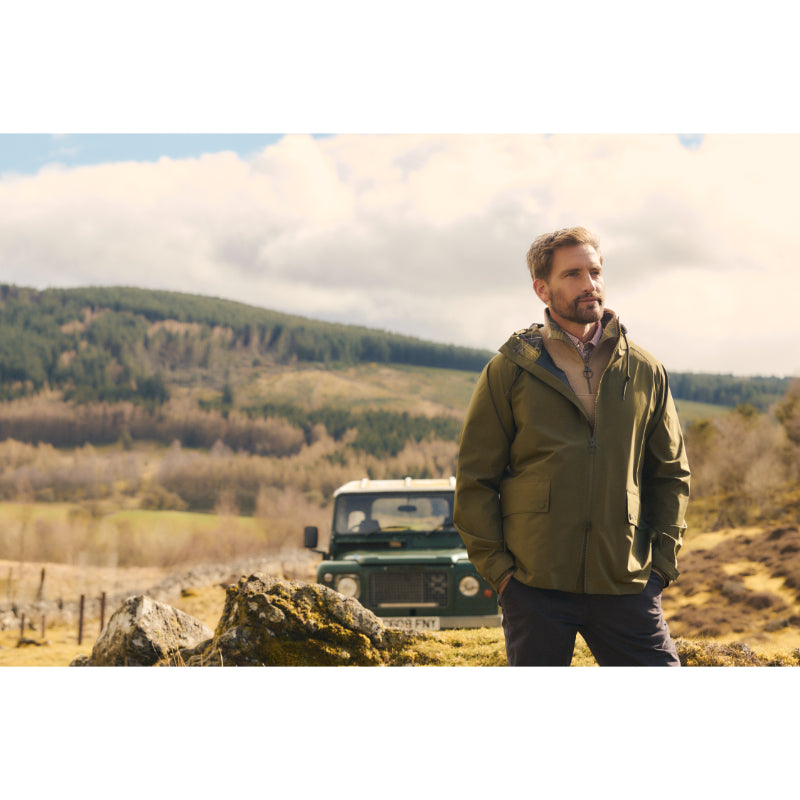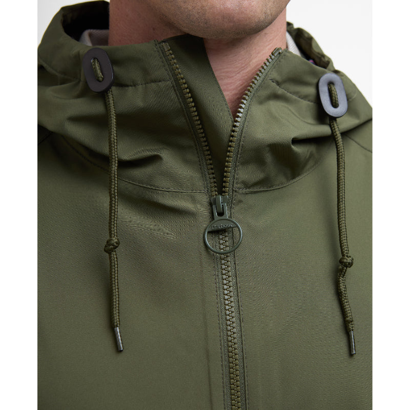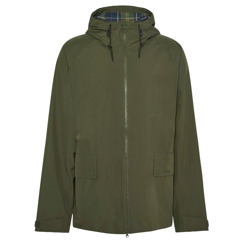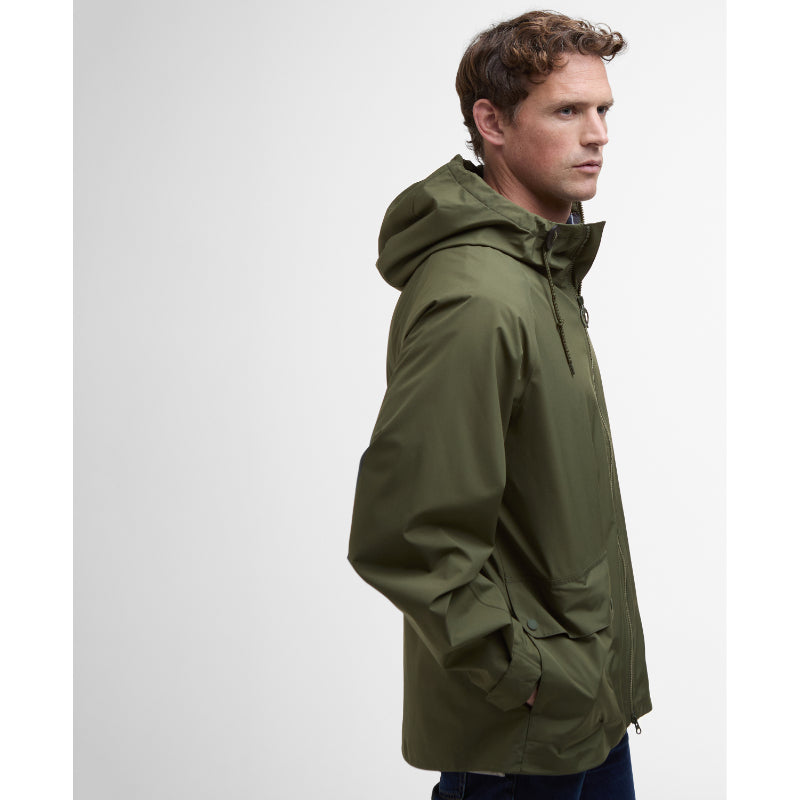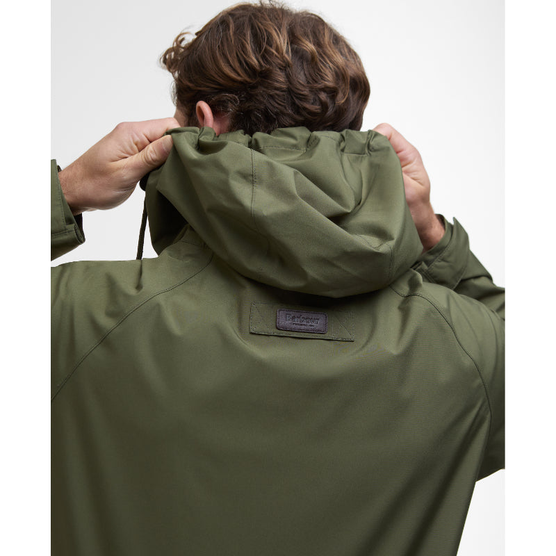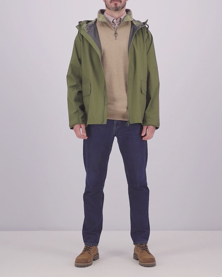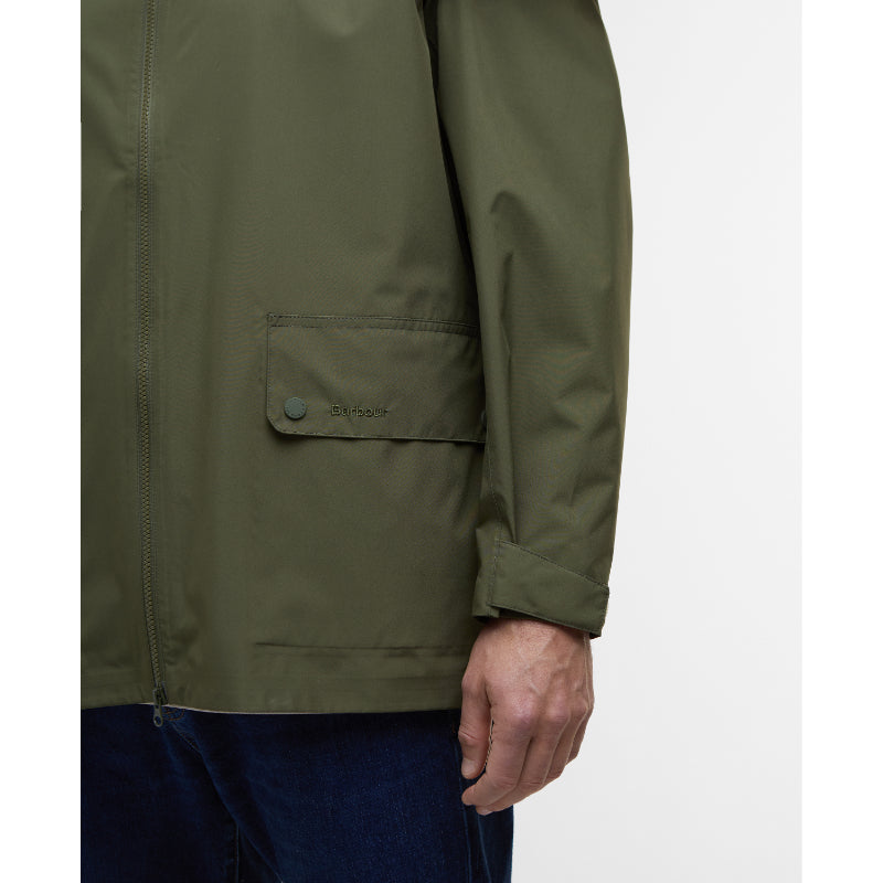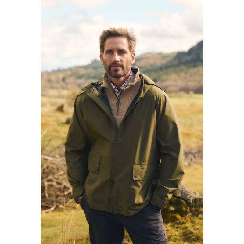 This Barbour Trover waterproof jacket, featuring fully taped seams and adjustable elements such as the hood and cuffs, provides reliable protection from rain and wind. Its professional design includes a dipped hem, lower pockets, and Barbour embroidery and a leather badge for a touch of style.