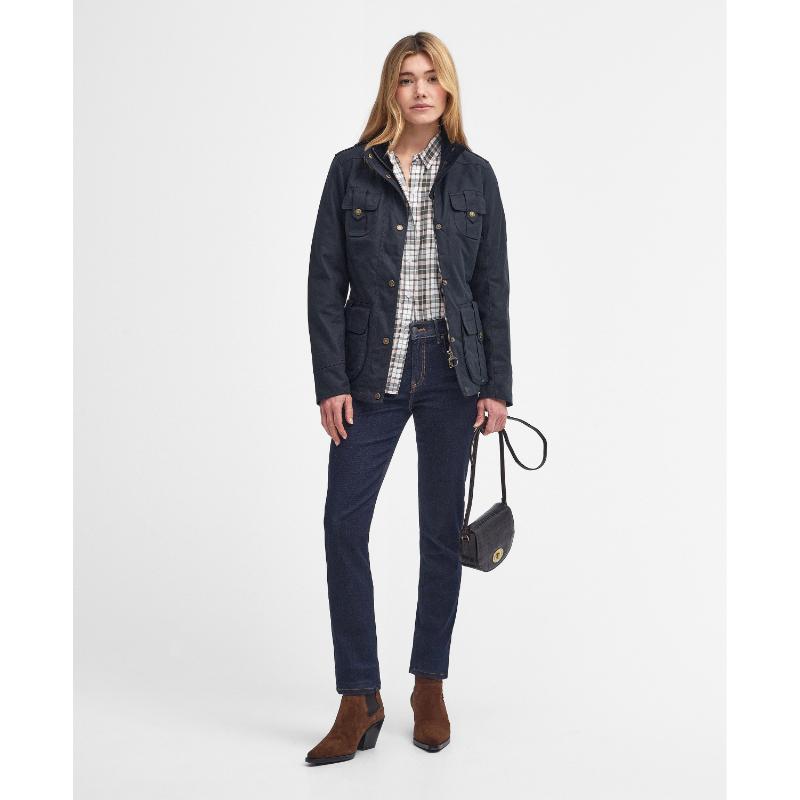 Barbour Winter Defence Ladies Wax Jacket - Navy/Classic