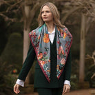 The Clare Haggas Airs & Graces Large Silk Scarf is crafted from 100% silk twill, made in England and hand finished with exceptional attention to detail. Featuring a beautiful Japanese-inspired floral design with stunning oriental birds, the colour palette is so rich and delightful it is sure to make any outfit pop. The large square shape is easy to style and can be worn in a variety of ways. Brighten up your day with this charming scarf... more than just an accessory, it's wearable art!