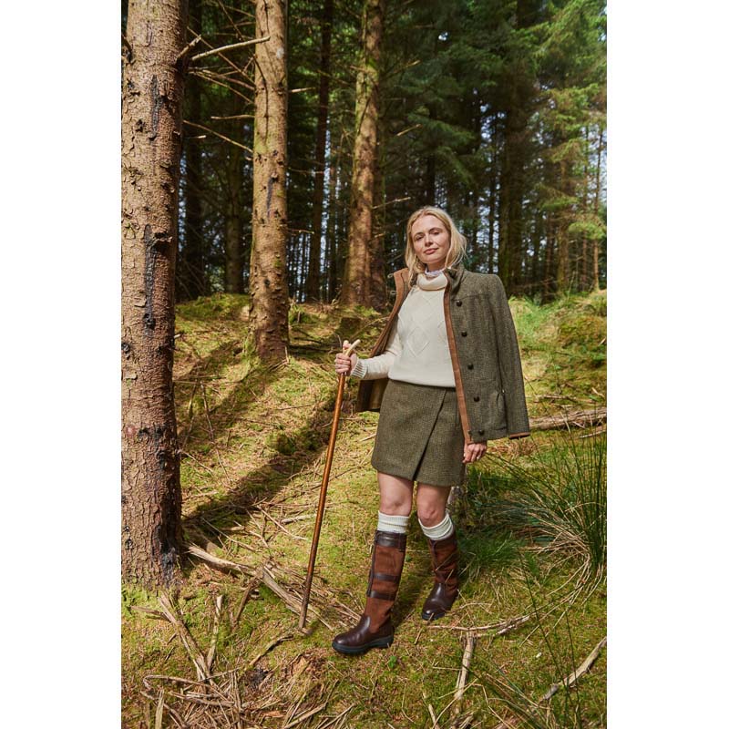 The Dubarry Buckthorn Ladies Tweed Skirt offers timeless style with modern convenience. Crafted with 100% pure wool featuring a Teflon® coating for long lasting wear, this faux-wrap skirt has a secure front and concealed back zip for a classy and discreet look. Functional welted front pockets add extra practicality, while the warm Dubarry jacquard lining provides luxurious comfort.