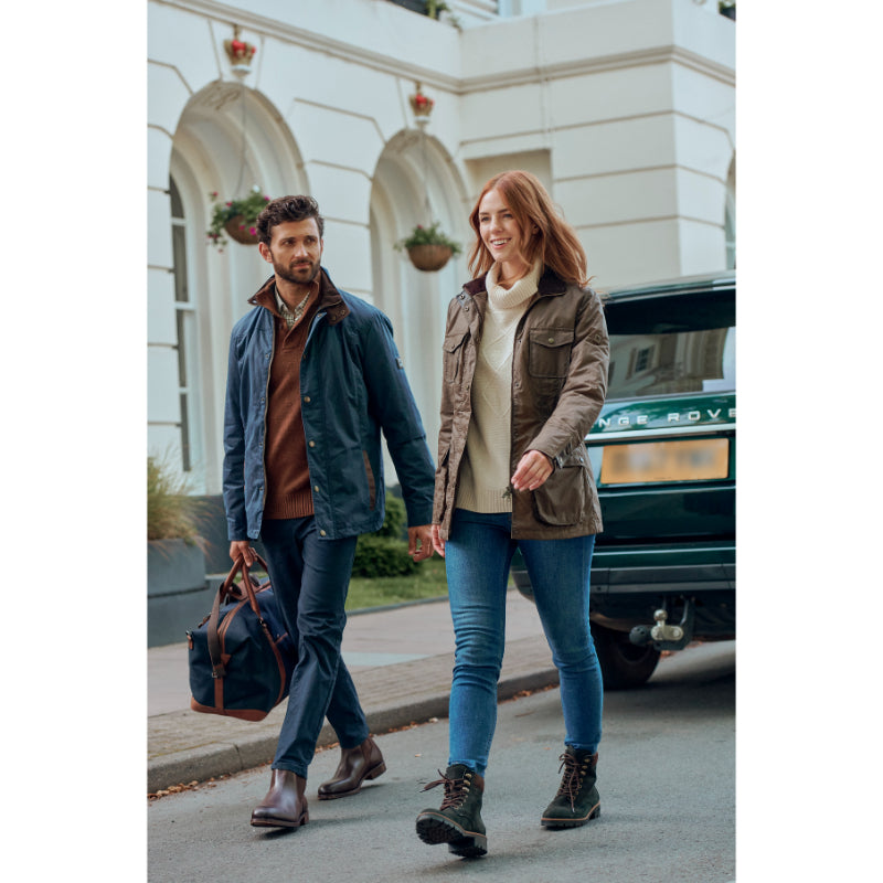 This Dubarry Carrickfergus Mens Primaloft Wax Jacket has a practical water repellent finish to the outer and is lined with PrimaLoft for added warmth. Featuring a YKK zip, studded front placket, high funnel neck collar for when the weather turns and finished with leather trims. Subtle Dubarry branding is evident throughout this rather casual but neat jacket. Back length approx. 31".