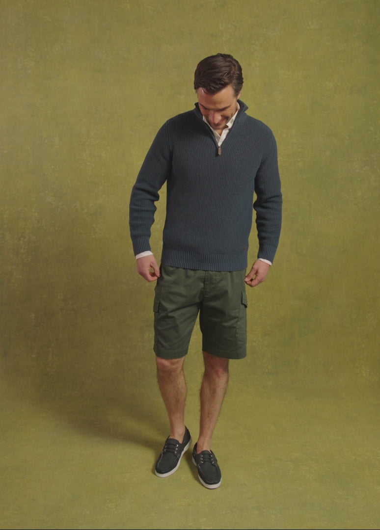 - Nautical tradition with a twist, featuring an all-over fisherman rib stitch
