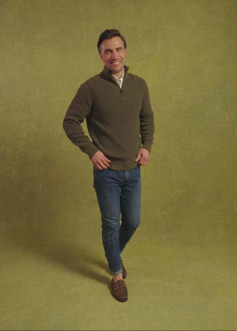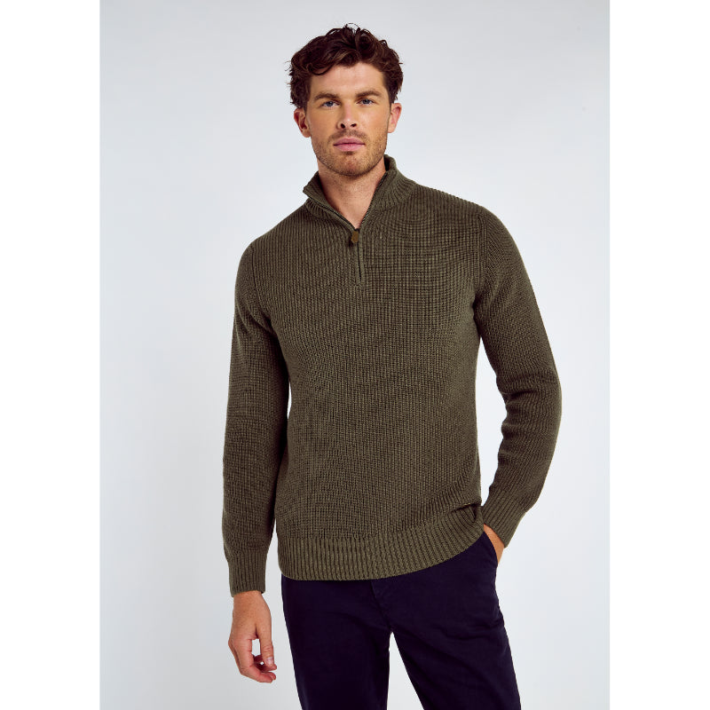 Dubarry Portmarnock Mens Cotton Merino 1/4 Zip Knitted Jumper - Kelp