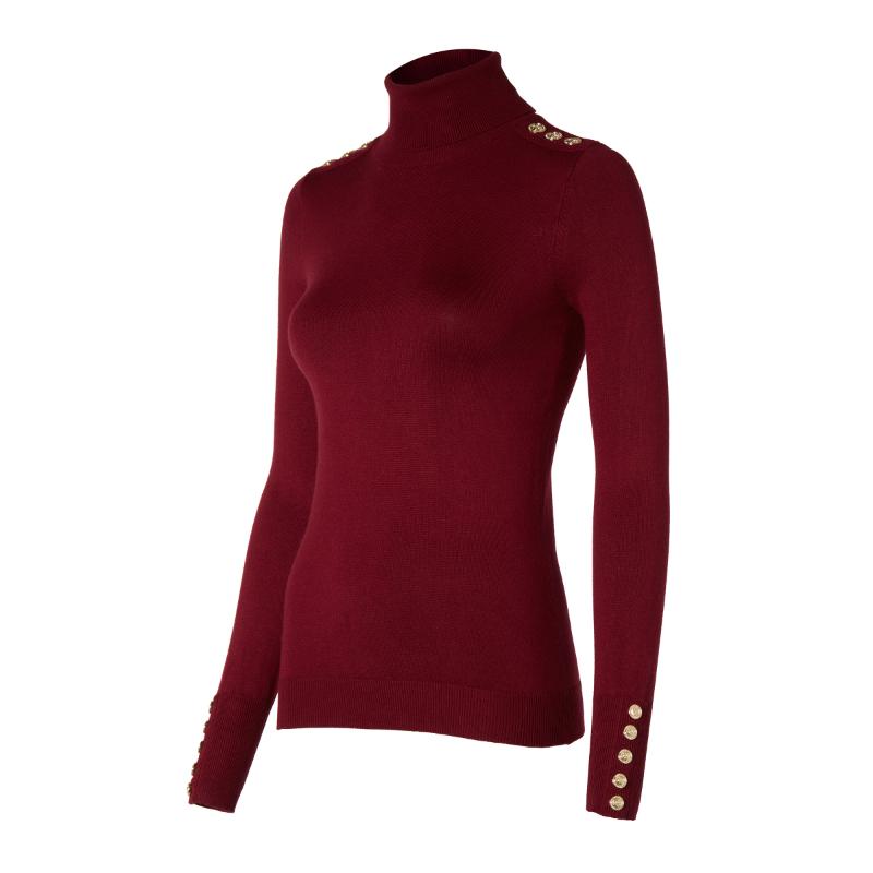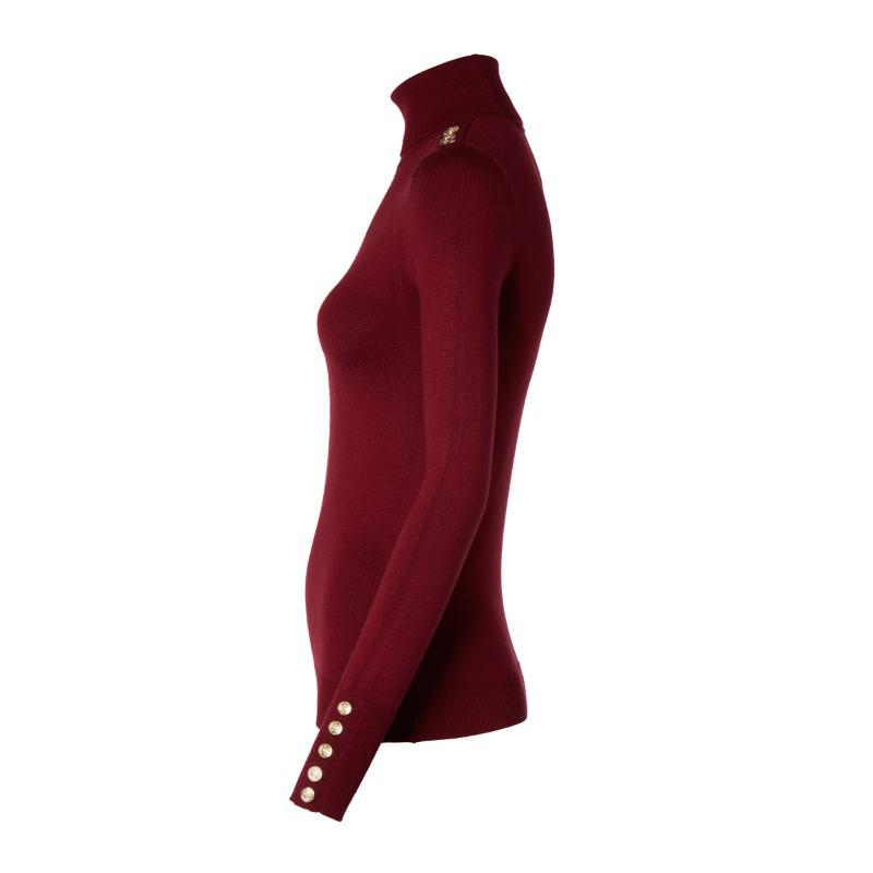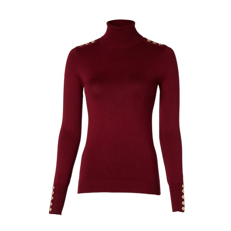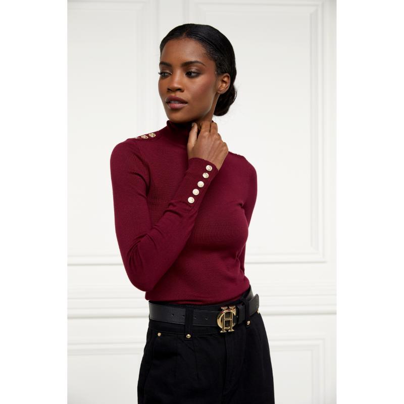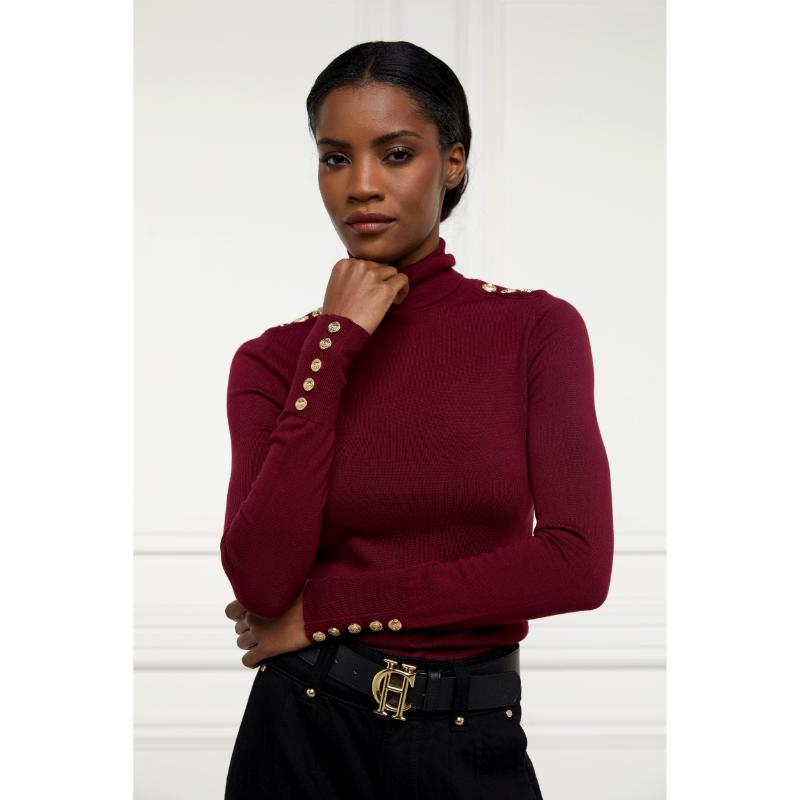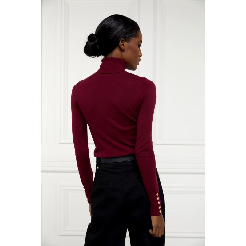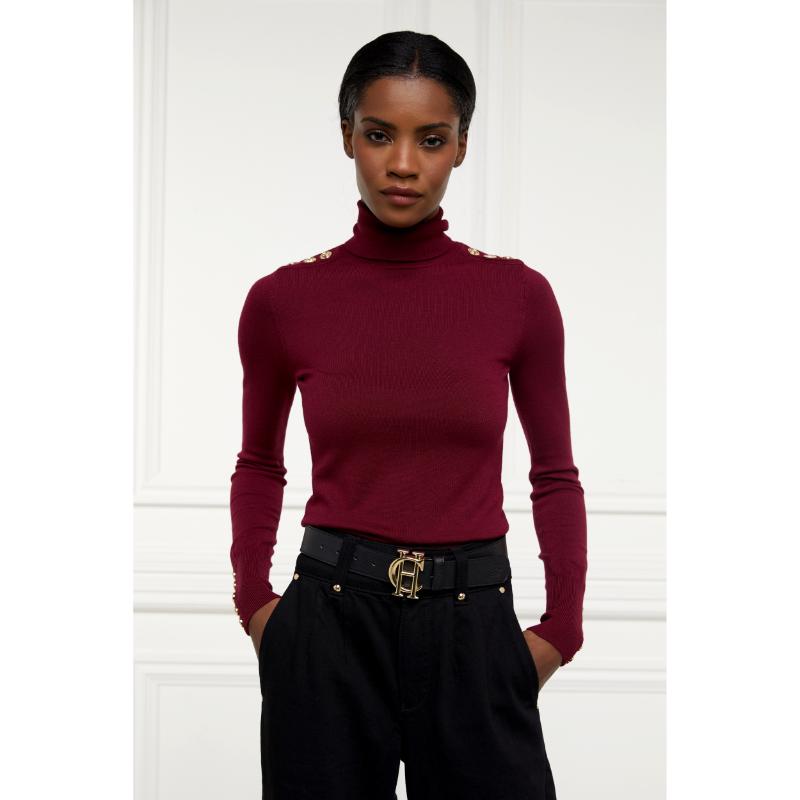 Holland Cooper Buttoned Roll Neck Ladies Knit - Wine