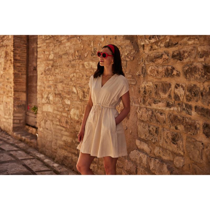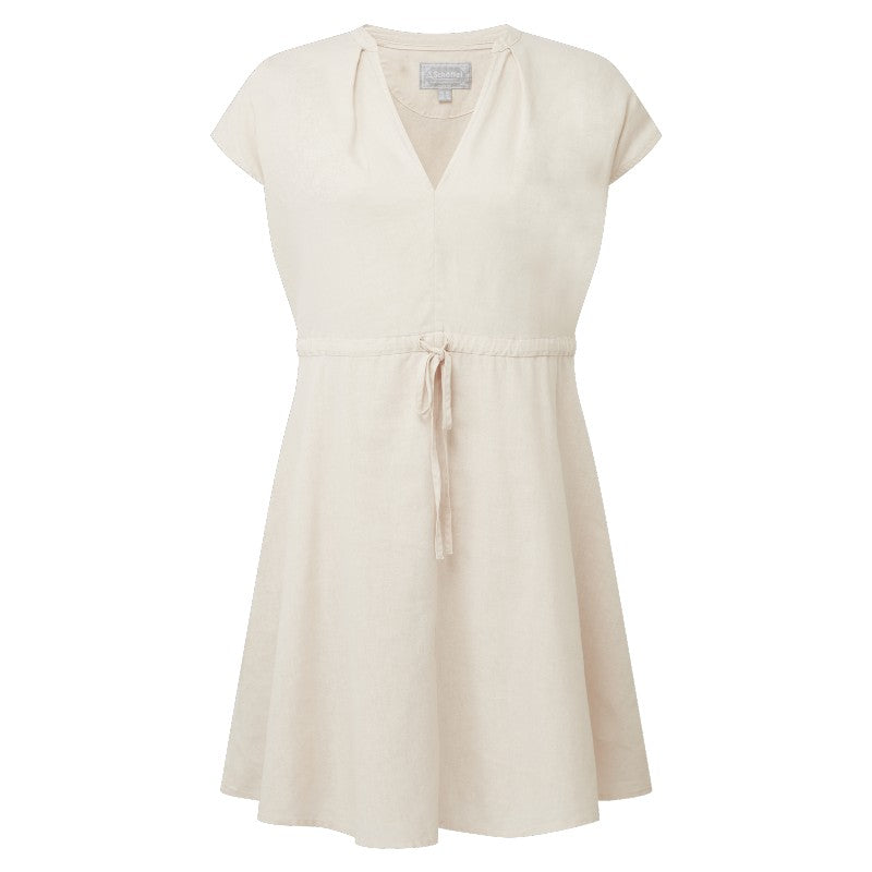 This Schoffel Camelia Ladies Linen Dress is the perfect summer essential with its garment dyed linen blend, creating a soft and luxurious feel. The relaxed fit and drawcord waist offer a comfortable yet flattering silhouette, while the V neck design and cap sleeves add a touch of elegance. With a length that sits just above the knee, this dress is both stylish and practical.