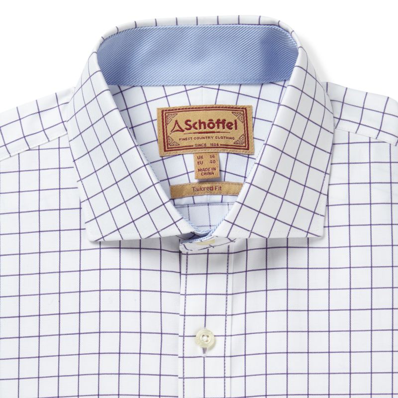 Schoffel Greenwich Single Cuff Tailored Fit Mens Shirt - Purple Check