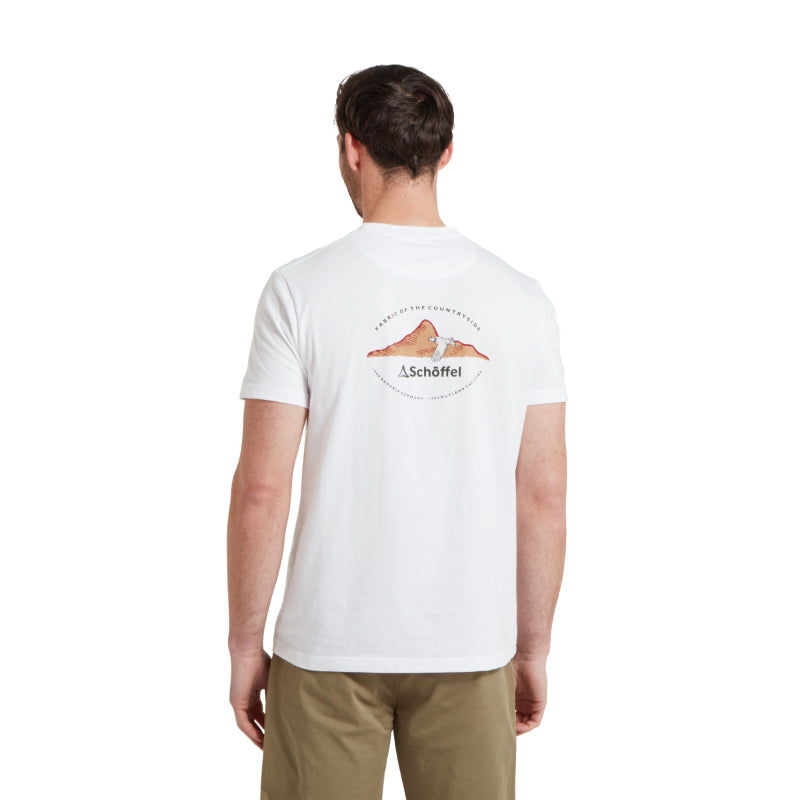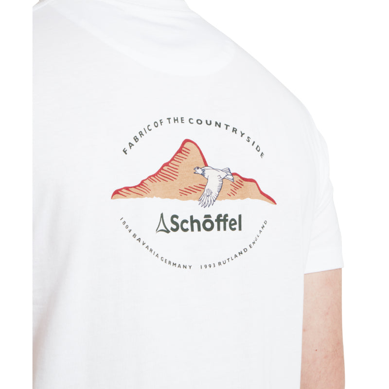 Crafted with 100% soft jersey cotton, the Schoffel Talland Mens T-Shirt guarantees a cosy and snug fit. Engineered with a tailored design and taped shoulder seams, it exudes a polished appearance. The addition of a Schoffel graphic print and embroidered Ptarmigan detail elevates its sophistication. This t-shirt is also easily machine washable for effortless maintenance.