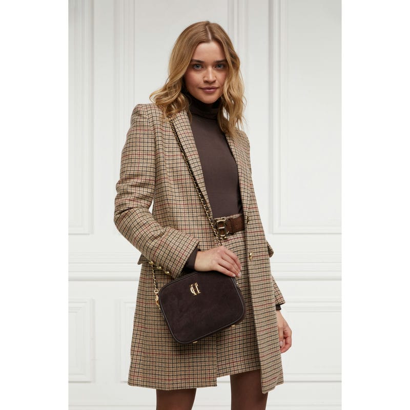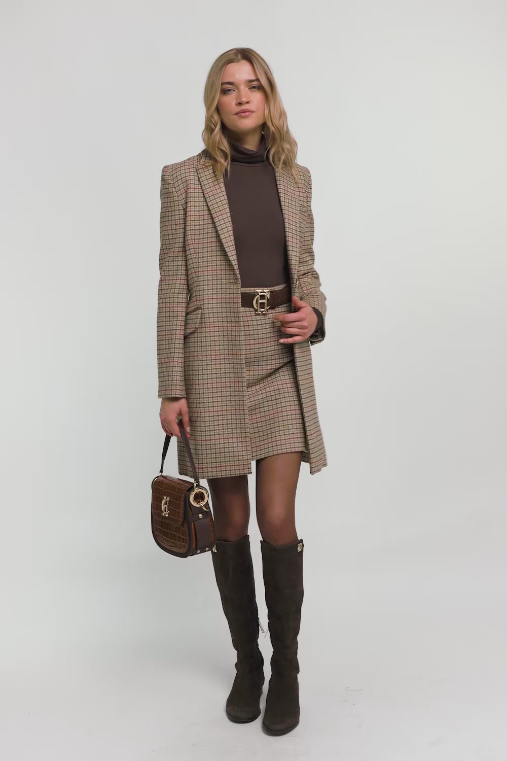 This classic Holland Cooper tweed skirt features tailored lines and is crafted from luxurious tweed. Fully lined and finished with iconic gold Holland Cooper hardware, this timeless classic pencil skirt lends sophisticated style with easy entrance through its concealed back zip and mini length. It is hand-cut in England and crafted with British-woven wools for superior quality.
