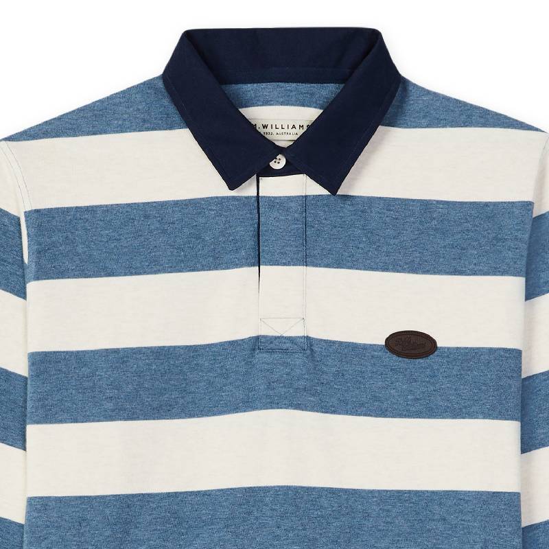 R.M.Williams Tweedale Mens Cotton Rugby Shirt - Blue/White