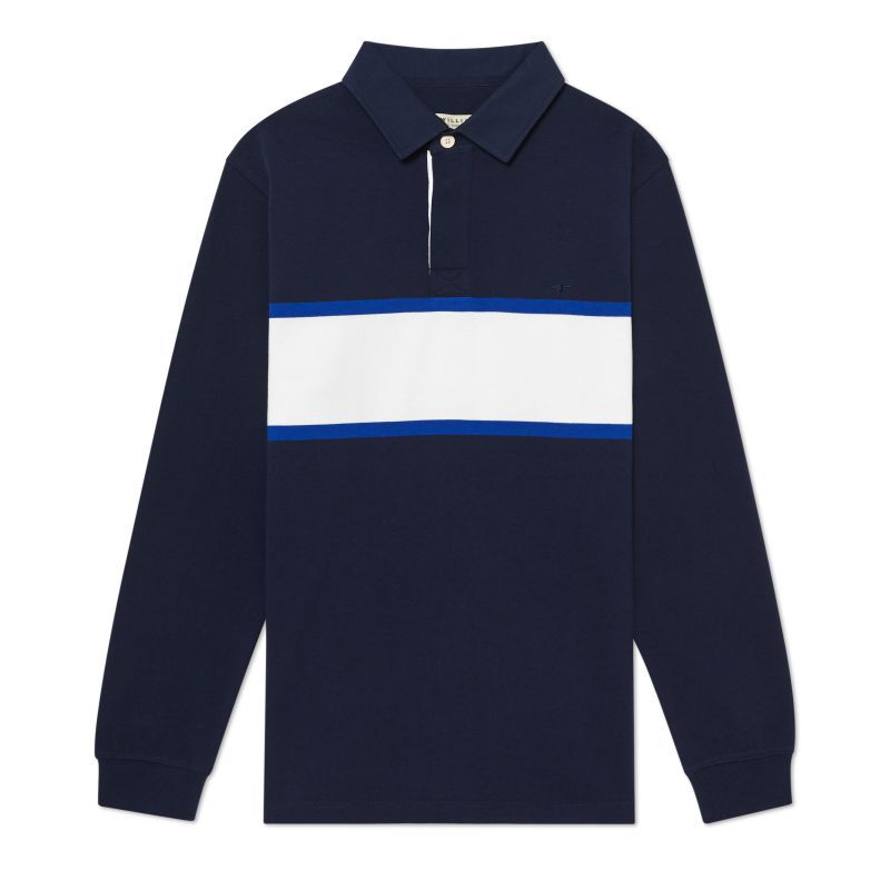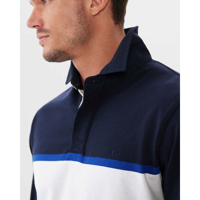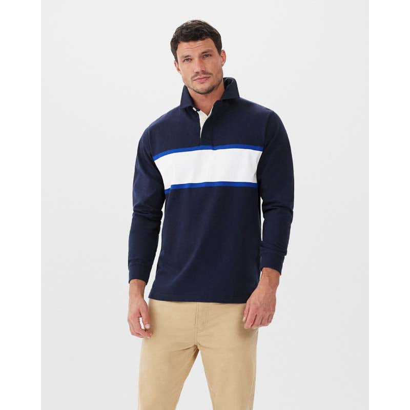 R.M.Williams Tweedale Mens Cotton Rugby Shirt - Navy/White