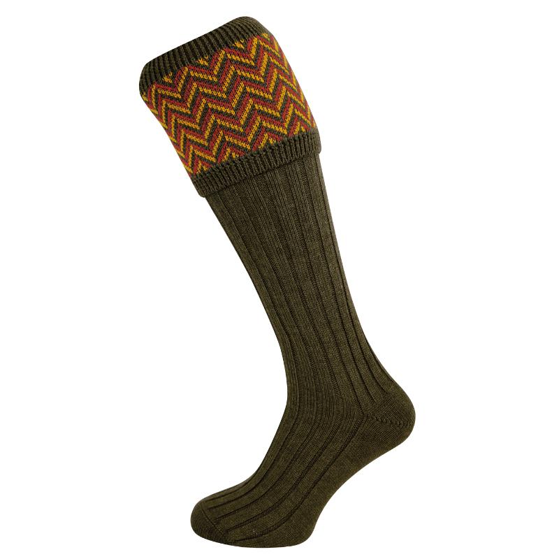 The William Powell Merino Shooting Socks are exclusively designed to match perfectly with the William Powell Melrose tweed collection. The top features a wonderful herringbone design showcasing the stunning colour hues of our Melrose tweed. Made in Scotland from soft touch 3-ply merino wool blended with acrylic for comfort, strength and washability, these superior quality socks have a fully reinforced foot with a ribbed leg design. They wash incredibly well (machine wash on a wool cycle).