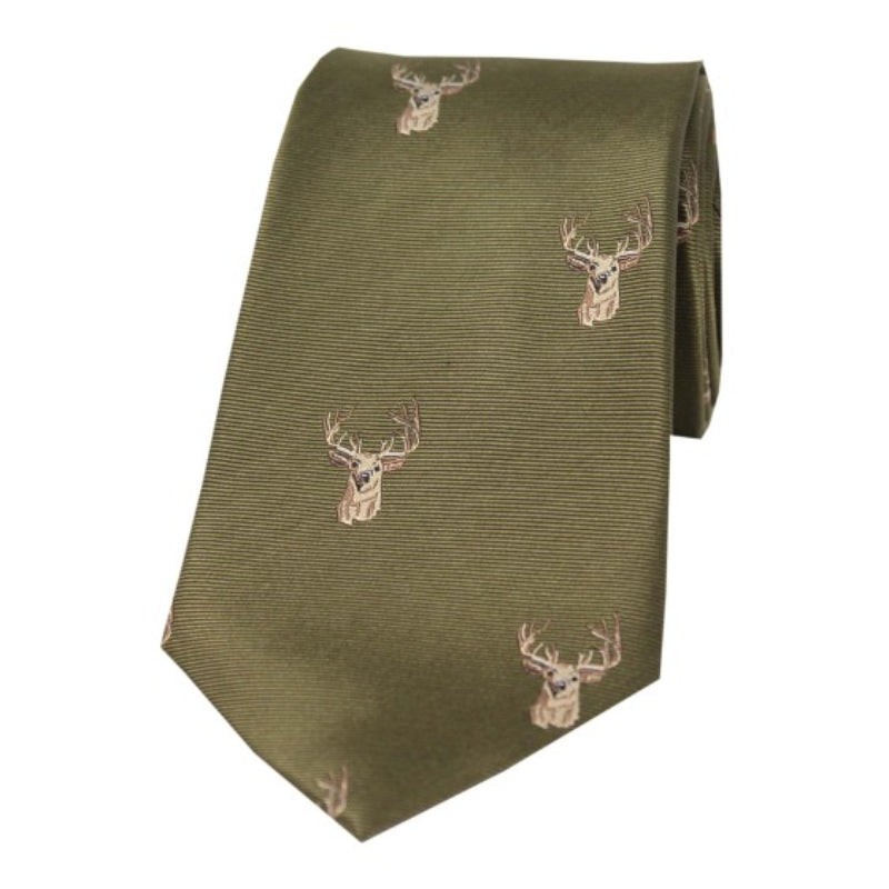 William Powell Woven Silk Stag Head Tie - Moss