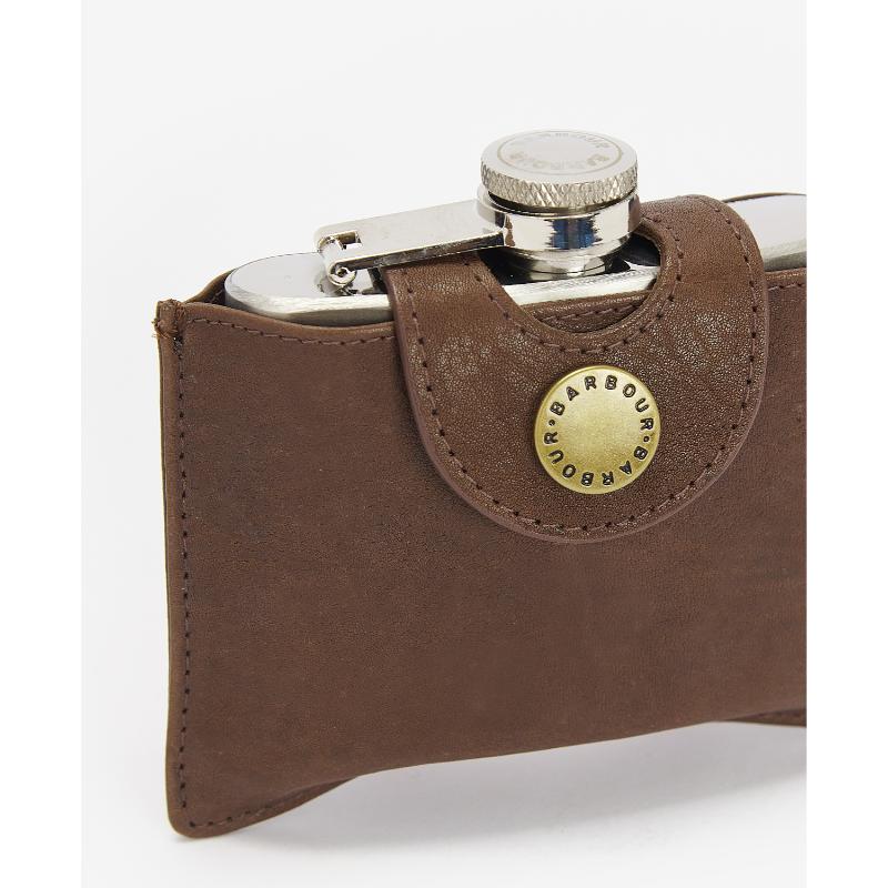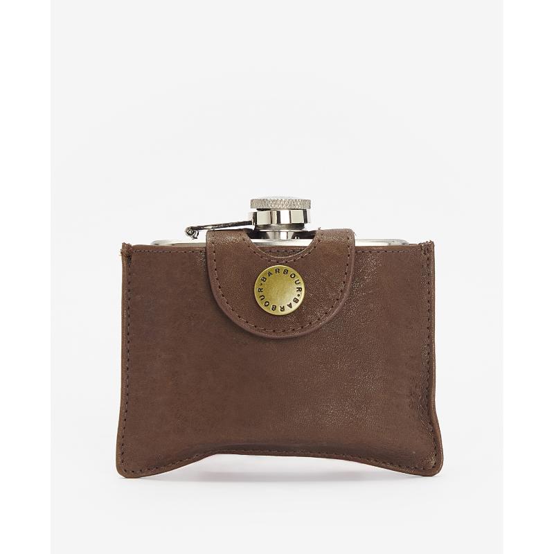 Barbour 4oz Hinged Hip Flask - Brown