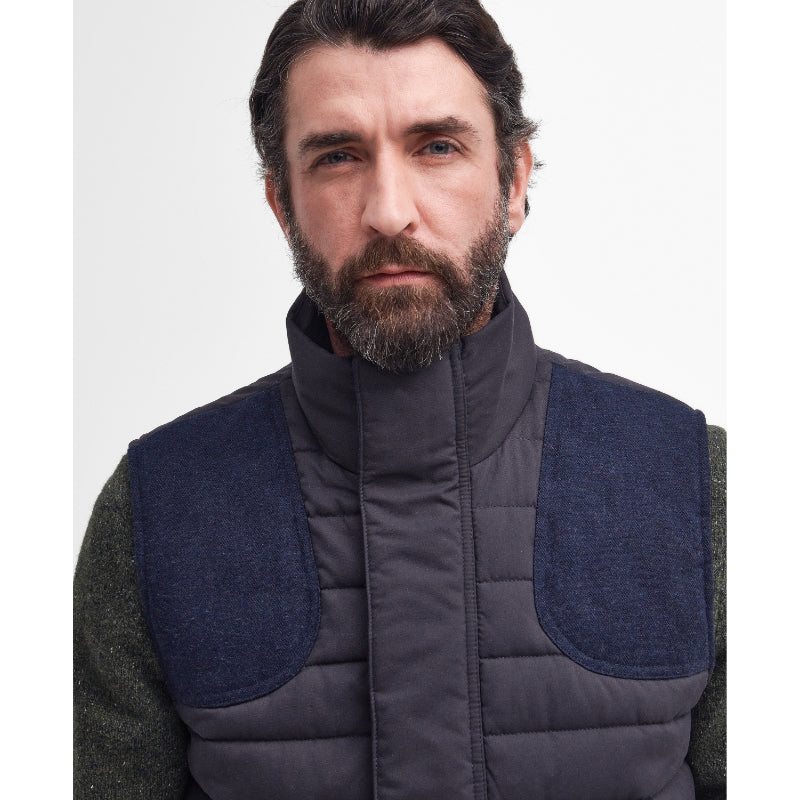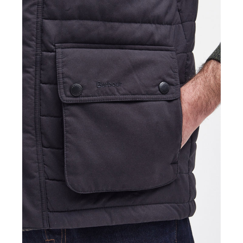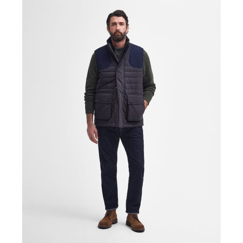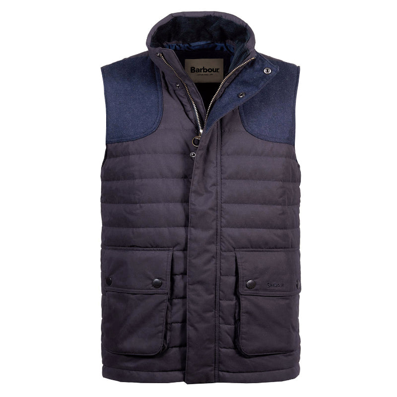 Barbour's Bradford Gilet is a rather smart quilted bodywarmer, designed to provide lightweight warmth with a 5cm baffle quilt outer. Stylish details include a heavyweight cord lining to the inner collar and herringbone cotton shoulder patches. There are large studded patch pockets with side entry, an inner hook and loop fastening pocket, and subtle Barbour branding to complete the overall handsome look.
