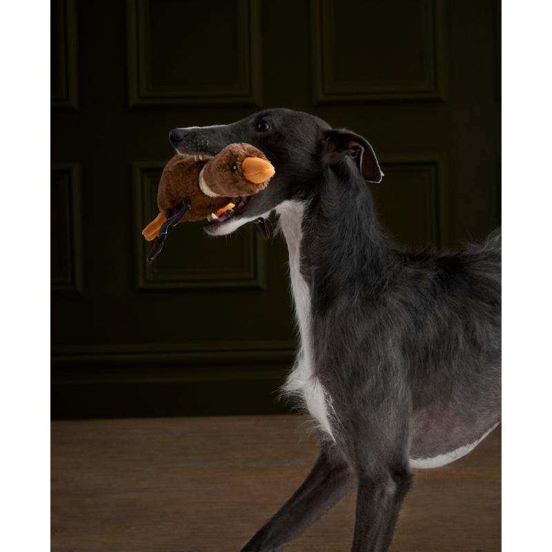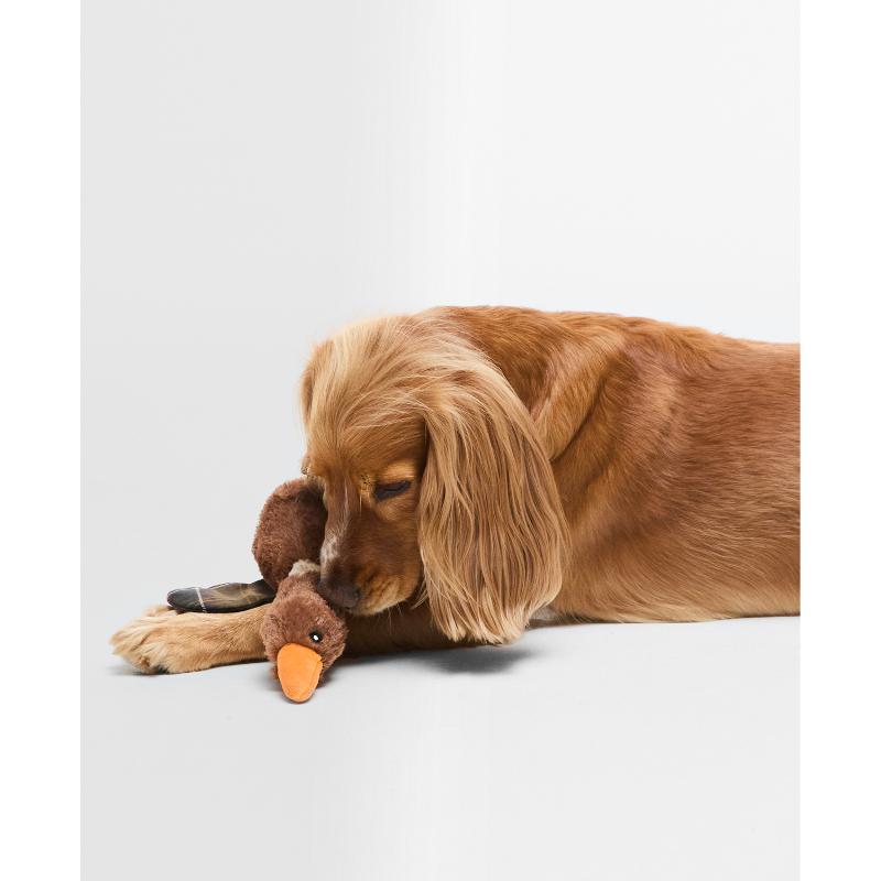 Bring outdoor fun to your dog's playtime with the Barbour Dog Flying Duck Toy. Featuring realistic plumage, a bright orange beak, and a classic Barbour tartan trim, this soft, cuddly toy includes a built-in squeaker to engage your pet. Ideal for fetching and carrying, it combines style with interactive play. Always supervise your dog during use and ensure the toy suits their size and chewing habits, as no toy is completely indestructible.