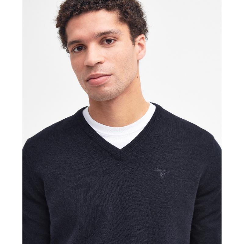 Barbour Essential Lambswool Mens V Neck Jumper - Navy