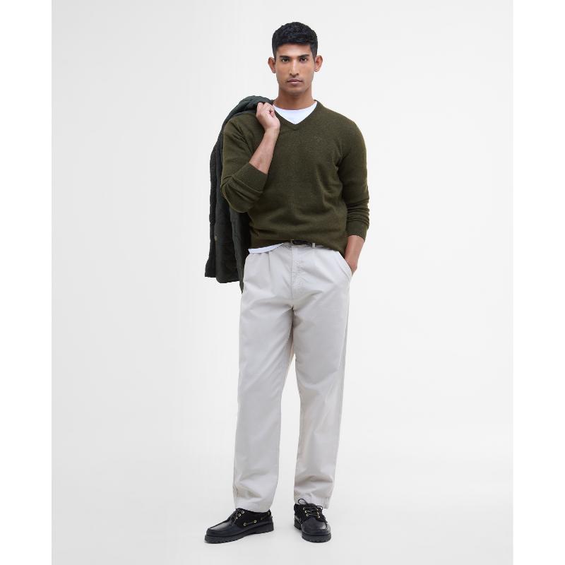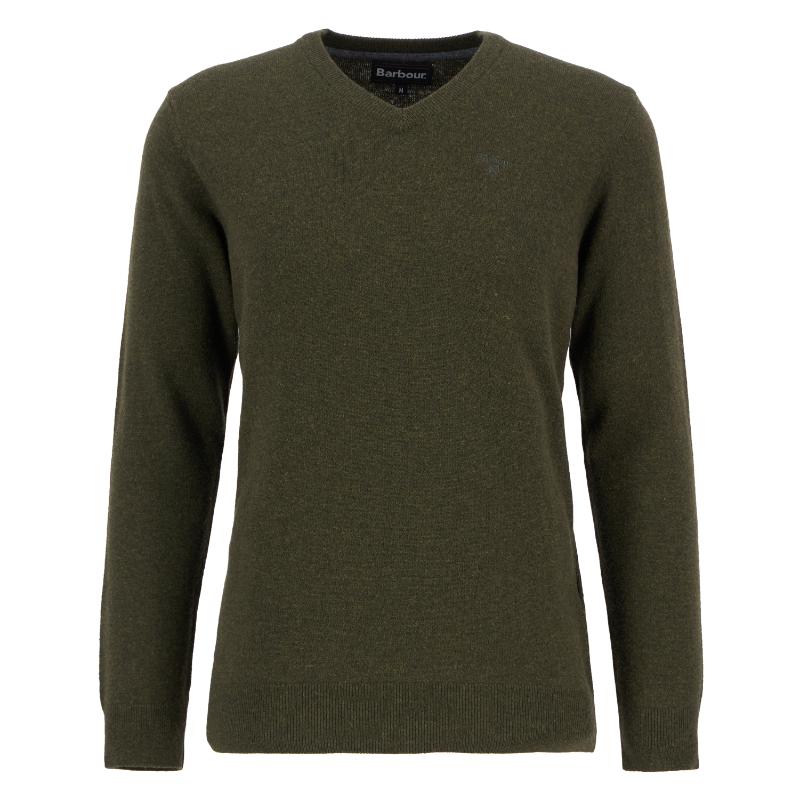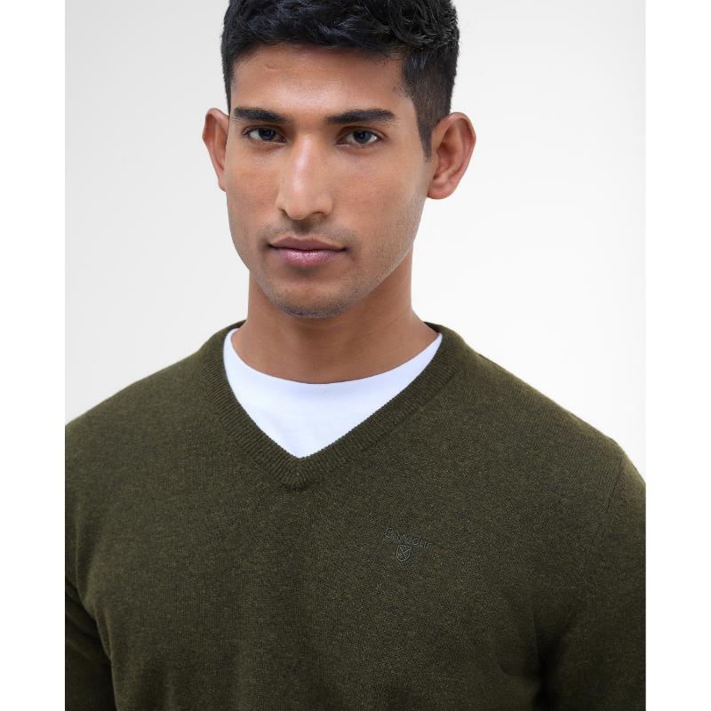 Barbour Essential Lambswool Mens V Neck Jumper - Seaweed