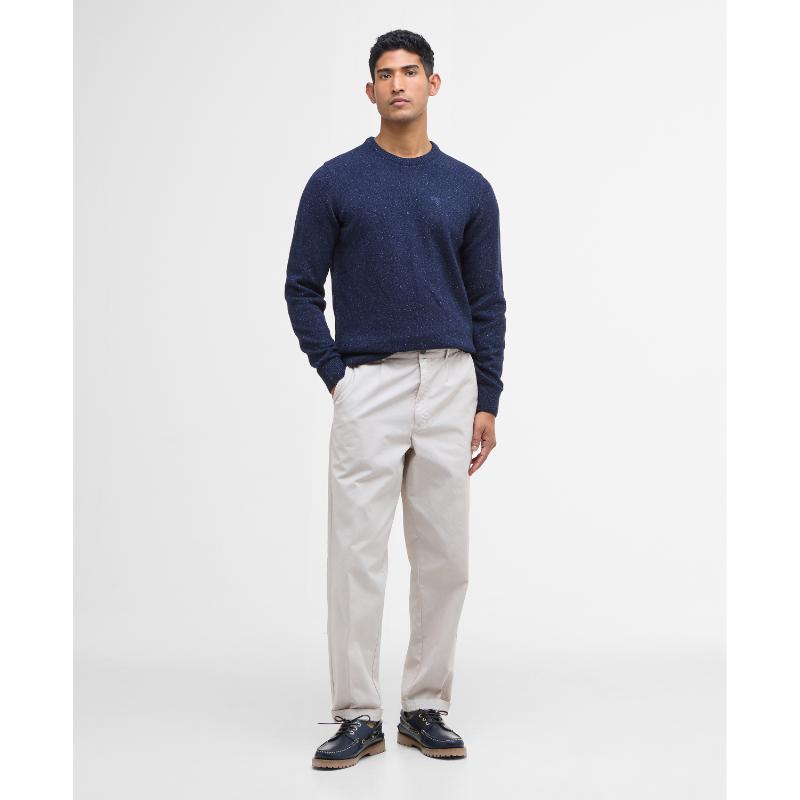 Elevate your wardrobe with the Barbour Essential Tisbury Lambswool Crew Neck Jumper. Made with lambswool, this sweater provides both warmth and style with its tweed fleck yarn. The subtle branding of the Barbour tonal shield adds an extra touch of detail to this simple yet stylish piece, perfect for any smart casual occasion.