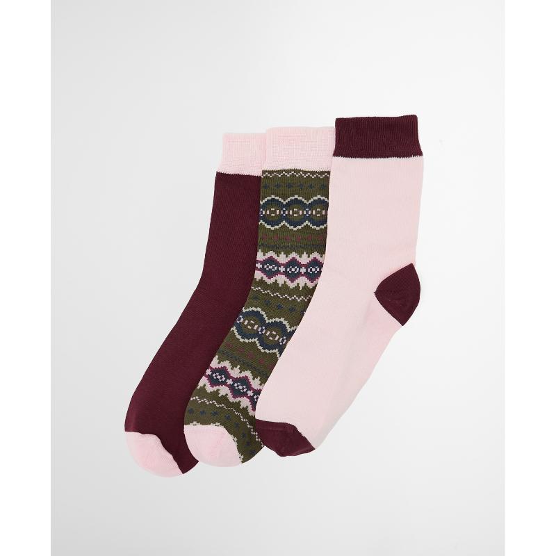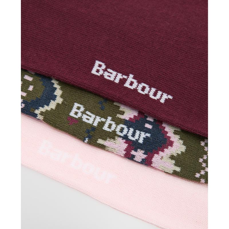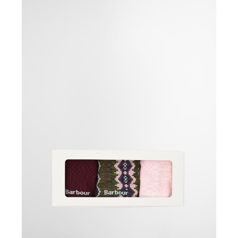 The Barbour Helen Fairisle Ladies Sock Gift Set offers three cotton-rich ankle socks combining traditional style with everyday comfort. One pair features a classic Fair Isle pattern, while the other two pairs present solid colours accented by contrasting heels and toes for a refined touch. Crafted from soft, breathable fabric, these socks provide lasting comfort and warmth. Elegantly packaged, this gift set is an excellent choice to introduce timeless pattern and cosy sophistication to any sock collection.