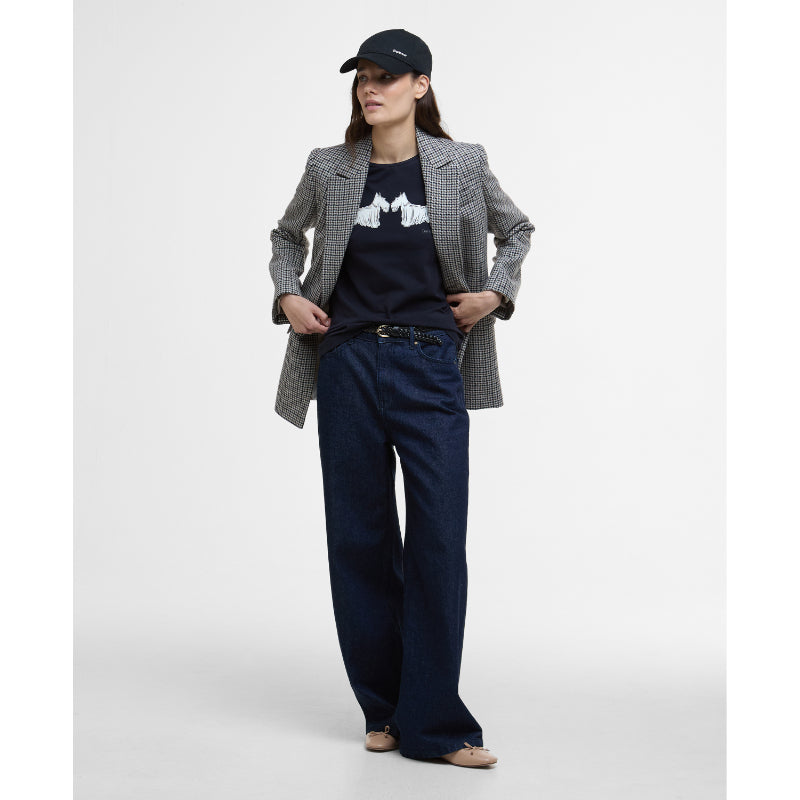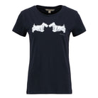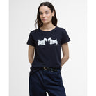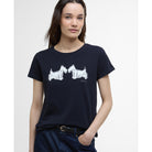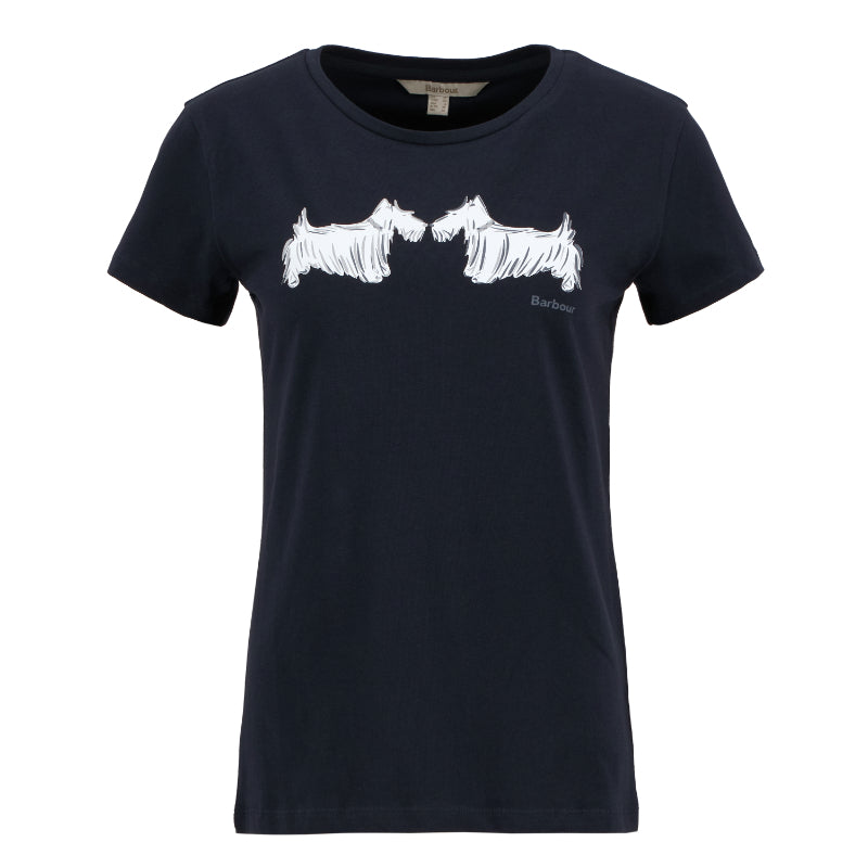 The Barbour Highlands Ladies T-Shirt in is a sleek, slim-fit shirt that features an eye-catching graphic of Barbour's iconic dogs on the chest. Made for the modern woman who appreciates both style and quality, this shirt is a versatile addition to any wardrobe. Bring some personality to your outfit with this unique t-shirt.