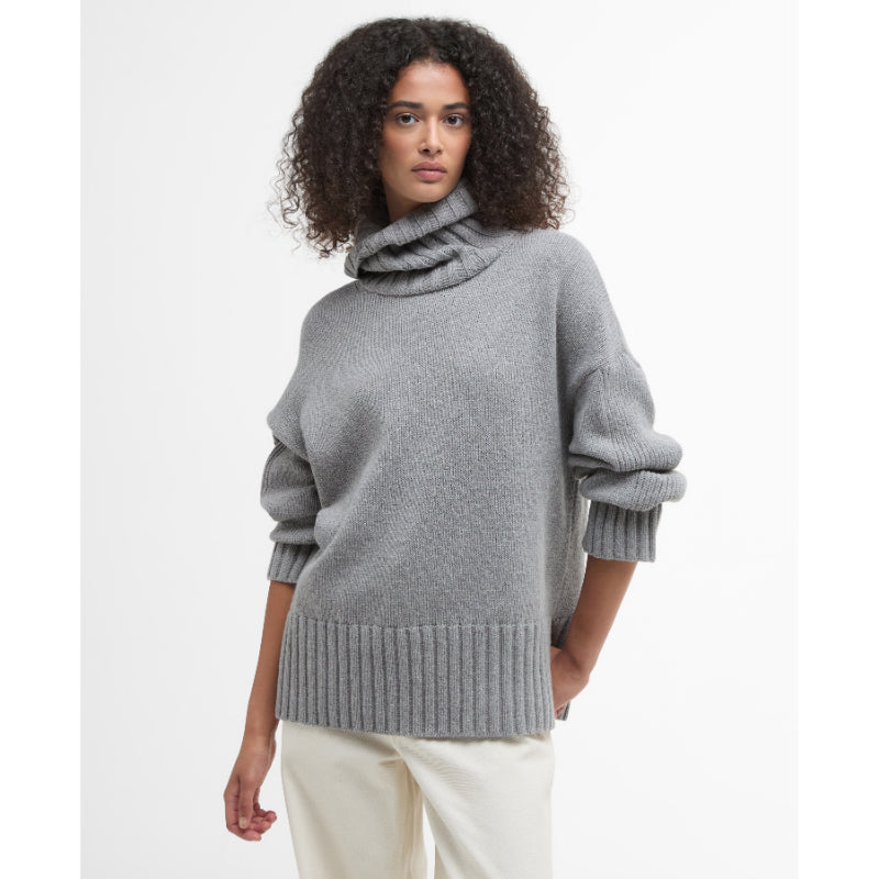 Barbour Josephine Knitted Ladies Roll Neck Jumper - Grey Marl