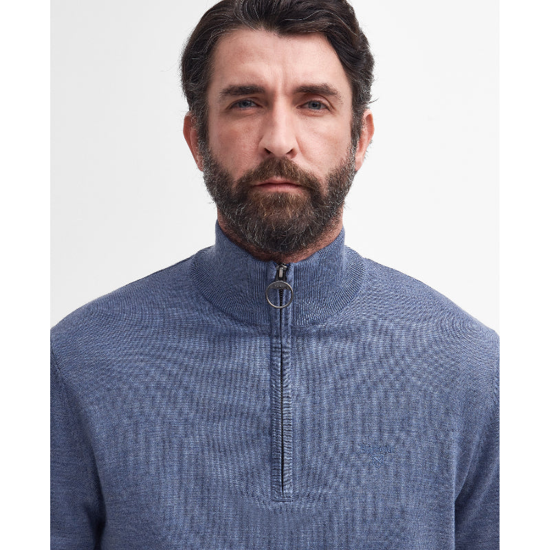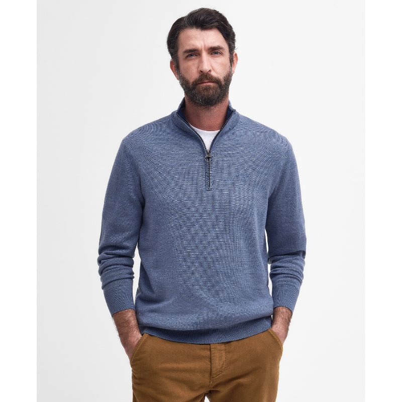 Barbour Loyton Merino Mens 1/4 Zip Jumper - Denim Blue