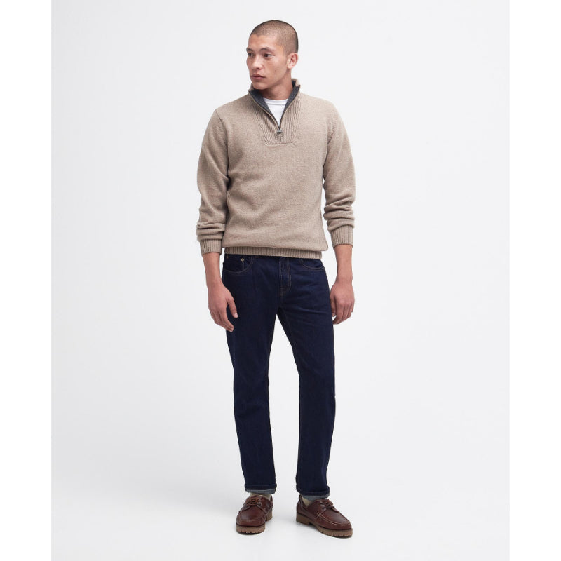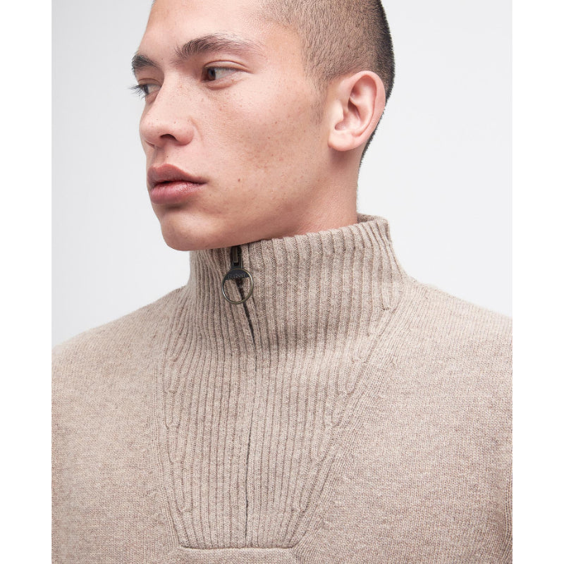 Barbour Nelson Essential Lambswool 1/4 Zip Mens Jumper - Stone