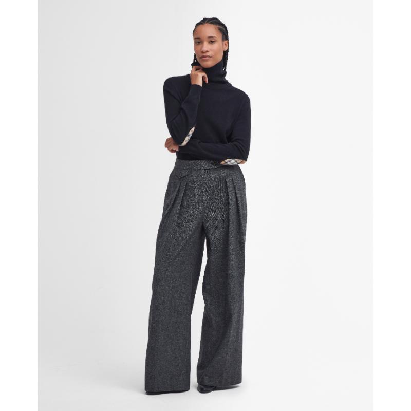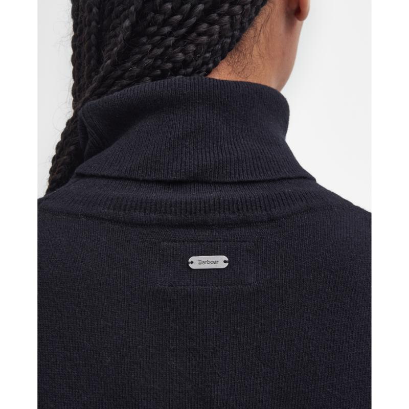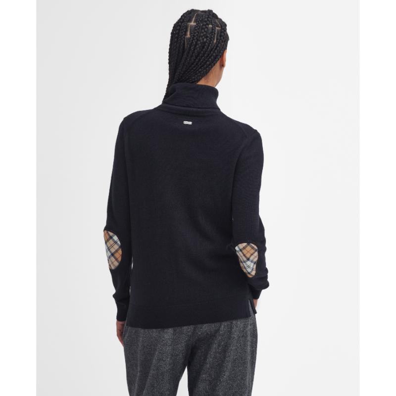 Barbour Pendle Roll Neck Knitted Ladies Jumper - Black/Hessian Tartan