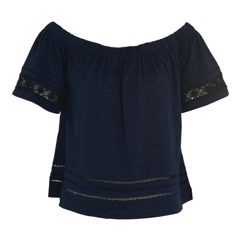 Stay cool this summer with the Barbour Ralee Ladies Top. Made from lightweight cotton, this relaxed fit bardot top features laddered trim details at the cuff and hem. Its wide neck can be worn on the shoulder or off the shoulders for an elegant effortless look. Style it with jeans and sandals for any casual summer or spring occasion.